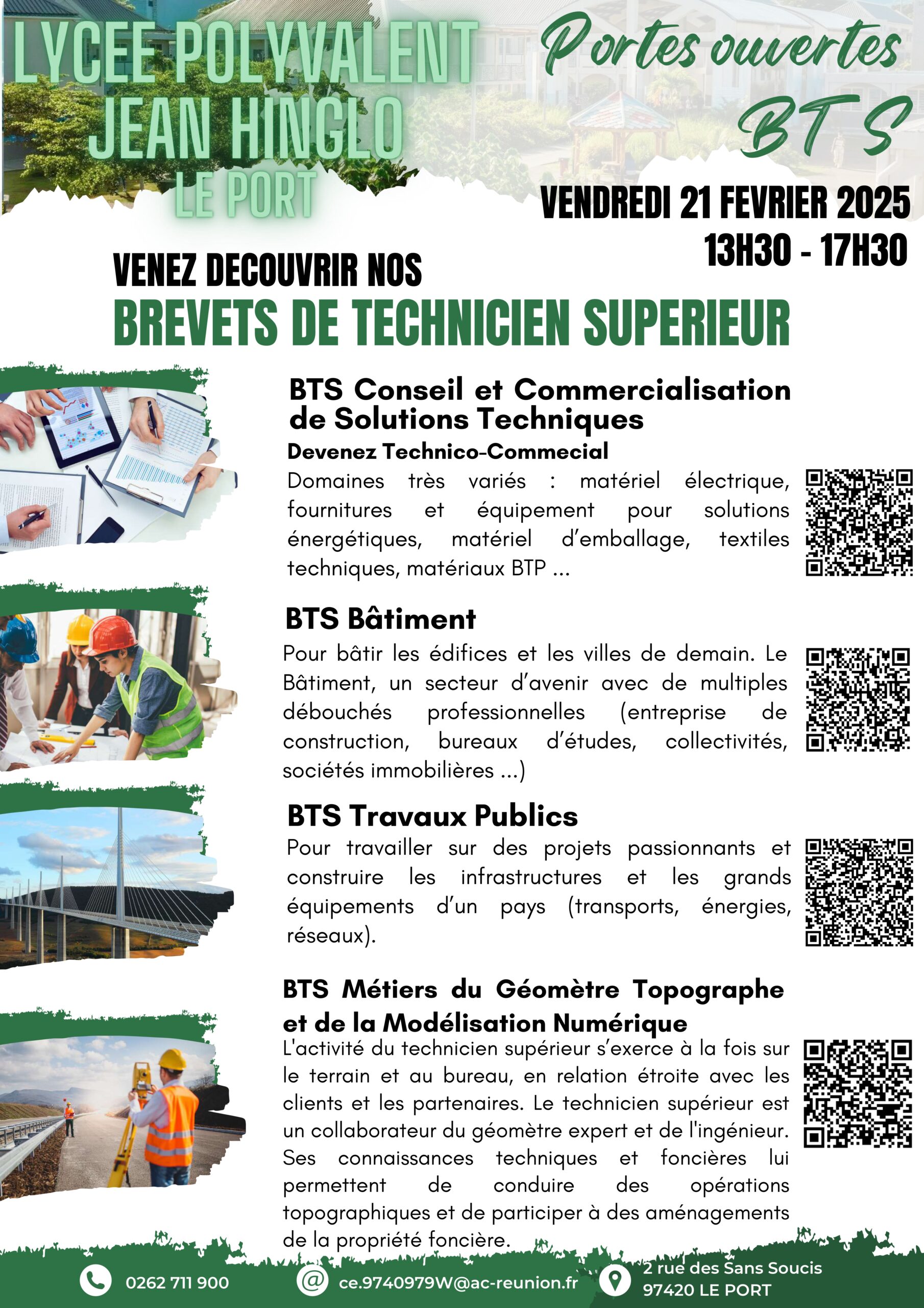 Nos Portes Ouvertes BTS se dérouleront le vendredi 21 février 2025 de 13h30 à 17h30.