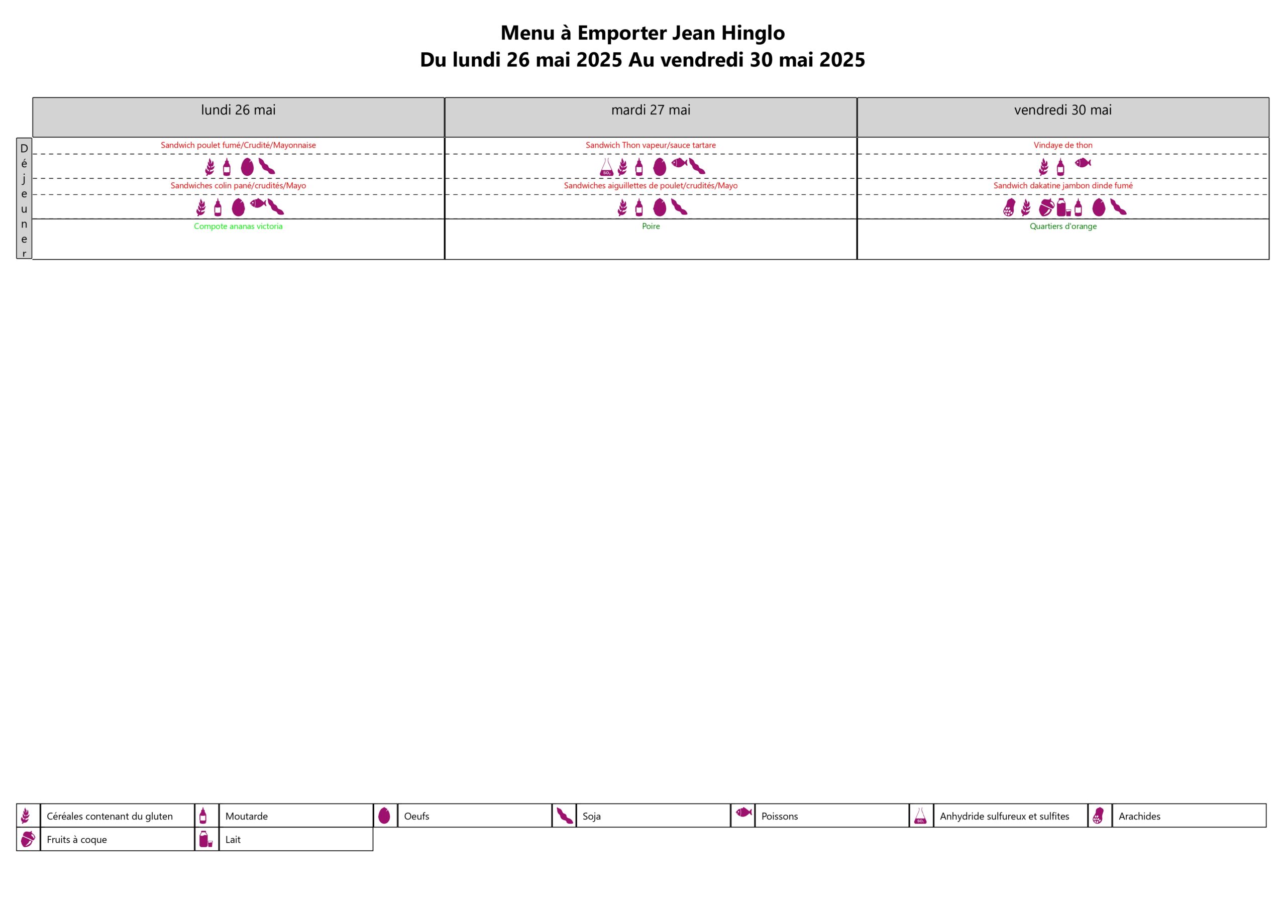 Formule cafétéria : Menu à emporter du lundi 26 au vendredi 30 mai 2025