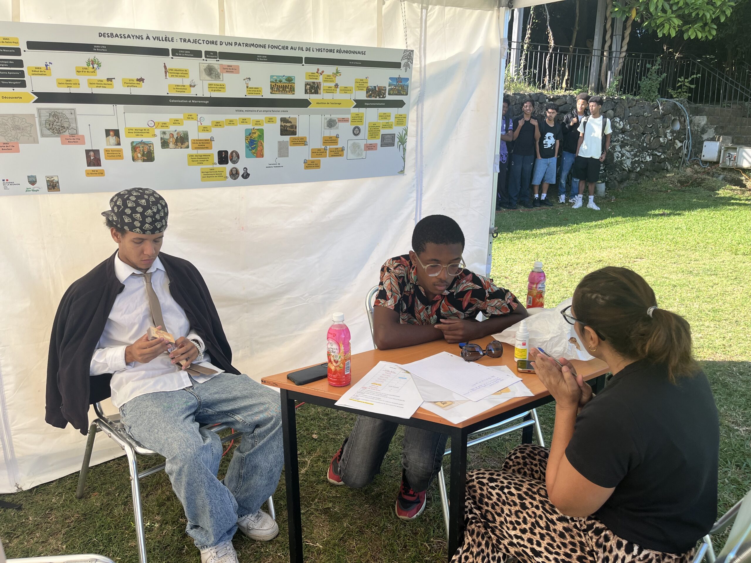 Le projet s’est articulé autour de la création d’une frise chronologique retraçant l’évolution des biens fonciers de Madame Desbassyns jusqu’au domaine actuel de Villèle, le tout en parallèle avec les grandes étapes de l’histoire de La Réunion.