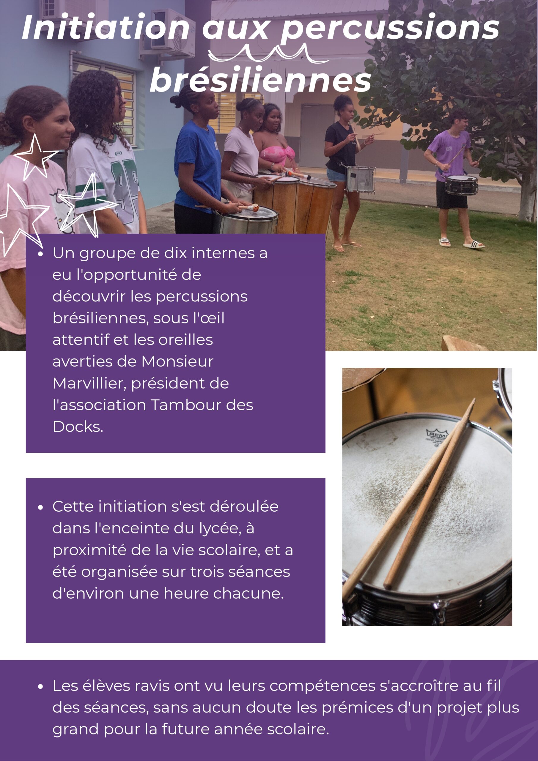 Initiation aux percussions brésiliennes à l’Internat d’Excellence