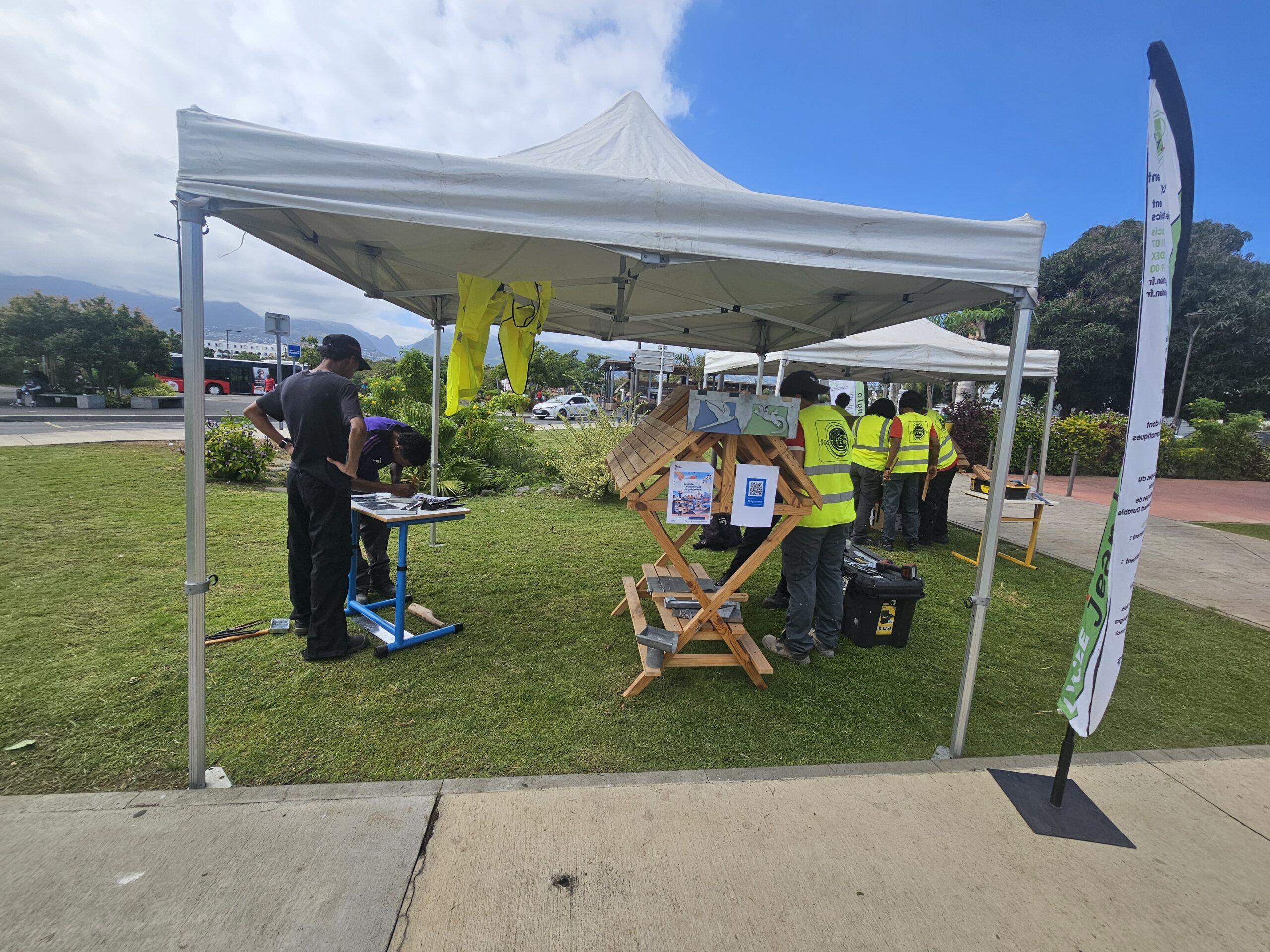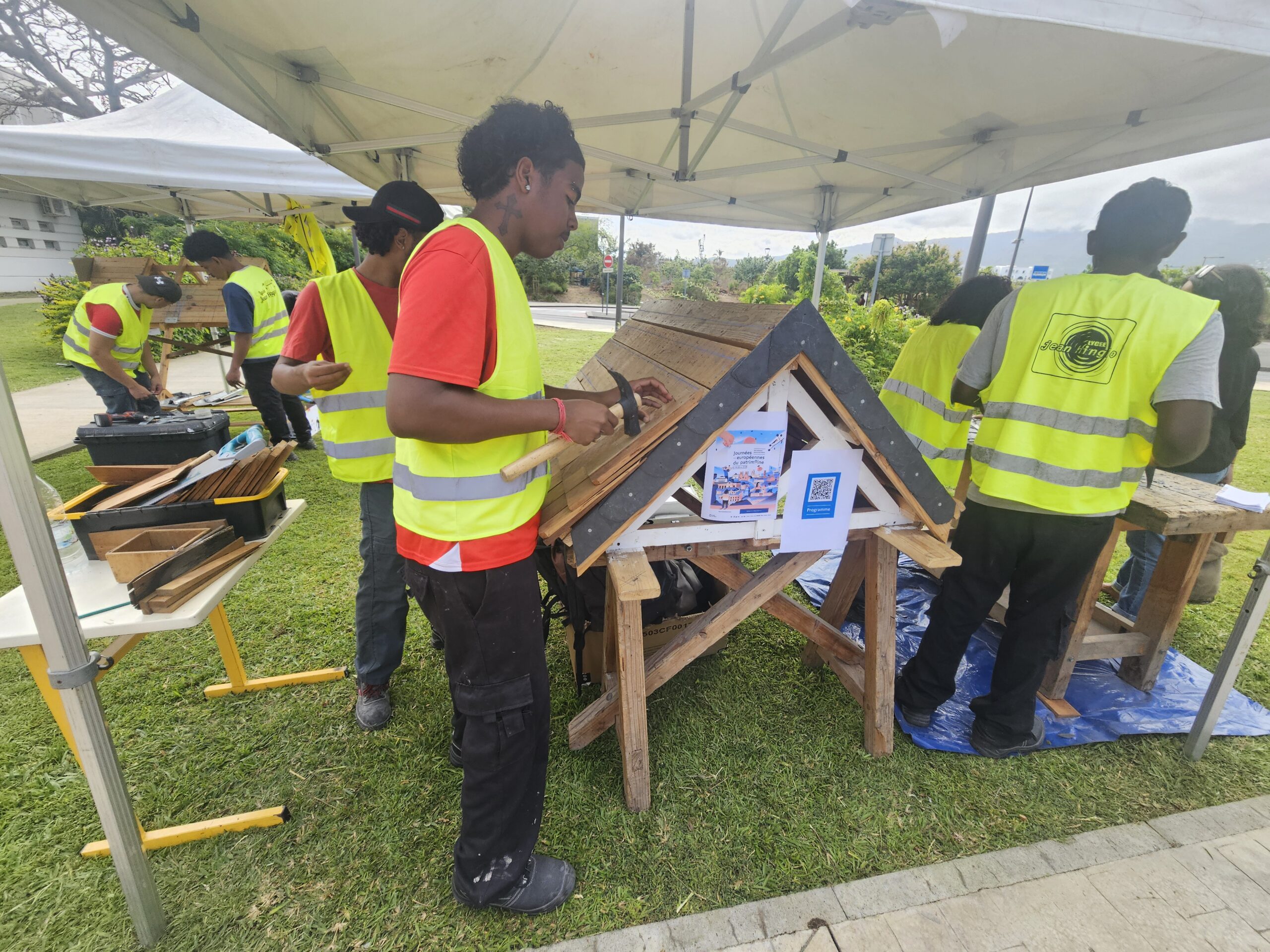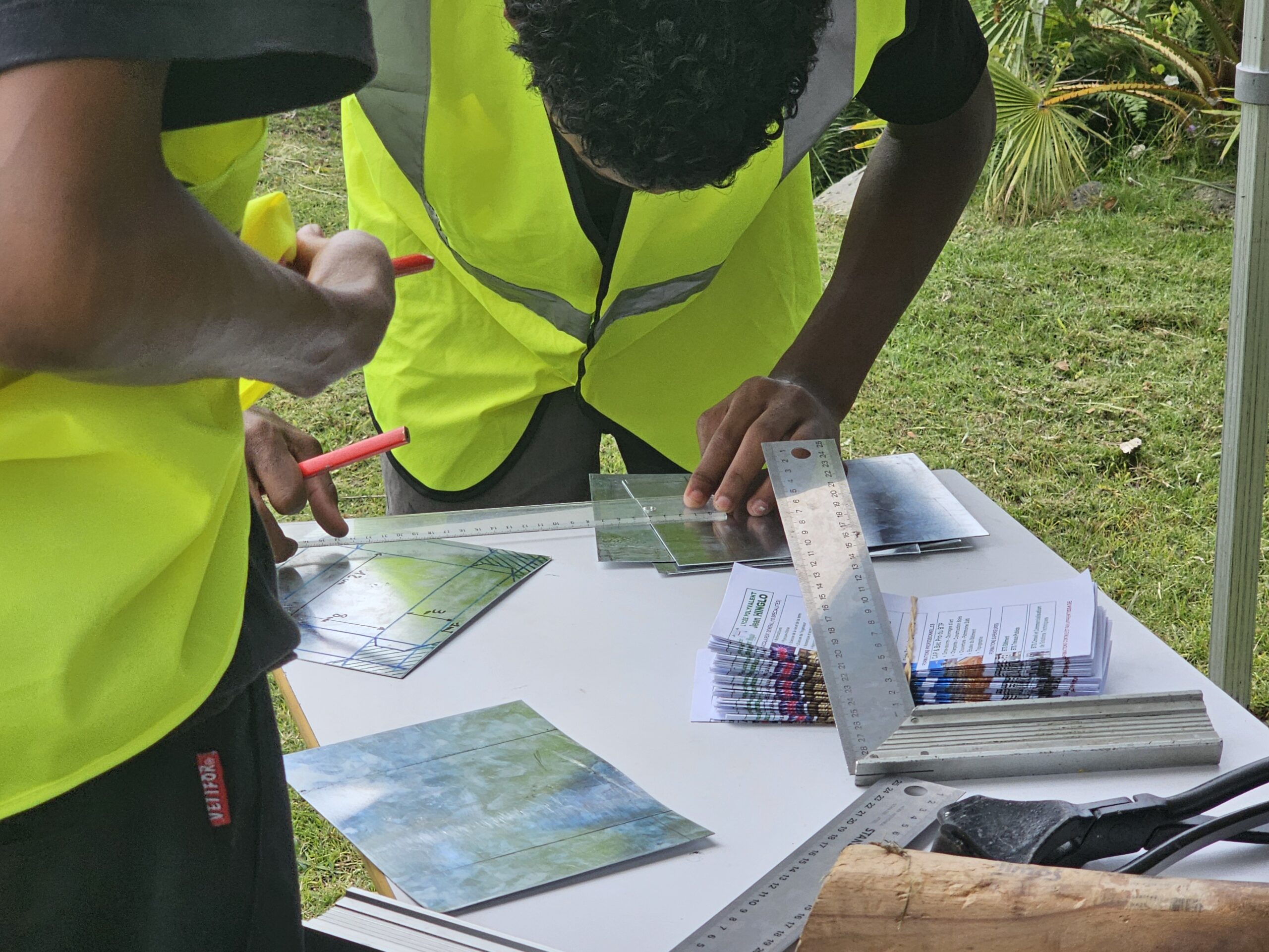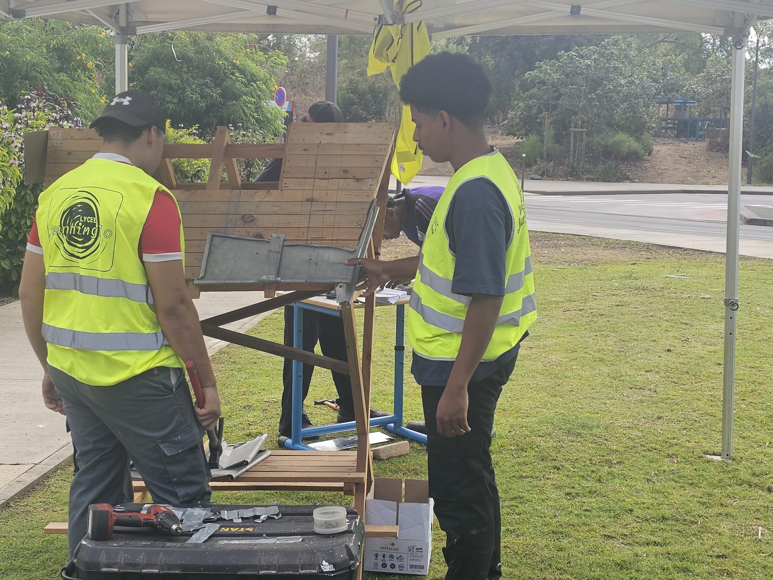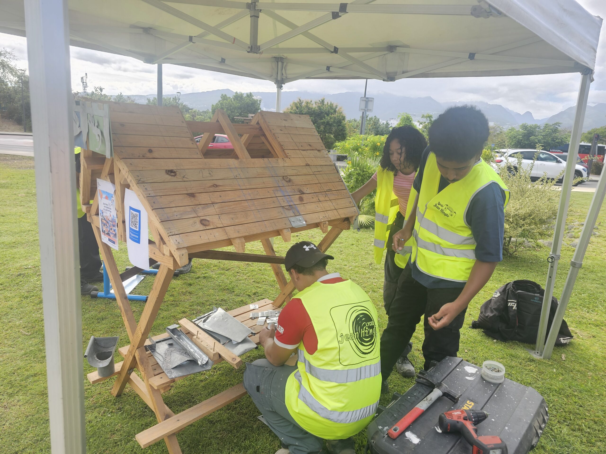 Vendredi 19 septembre 2025, à l’occasion des Journées européennes du patrimoine, les élèves de Terminale de la spécialité Intervention sur le Patrimoine Bâti du lycée Jean Hinglo ont réalisé une démonstration de couverture sur le parvis de la médiathèque Benoîte Boulard, au Port.