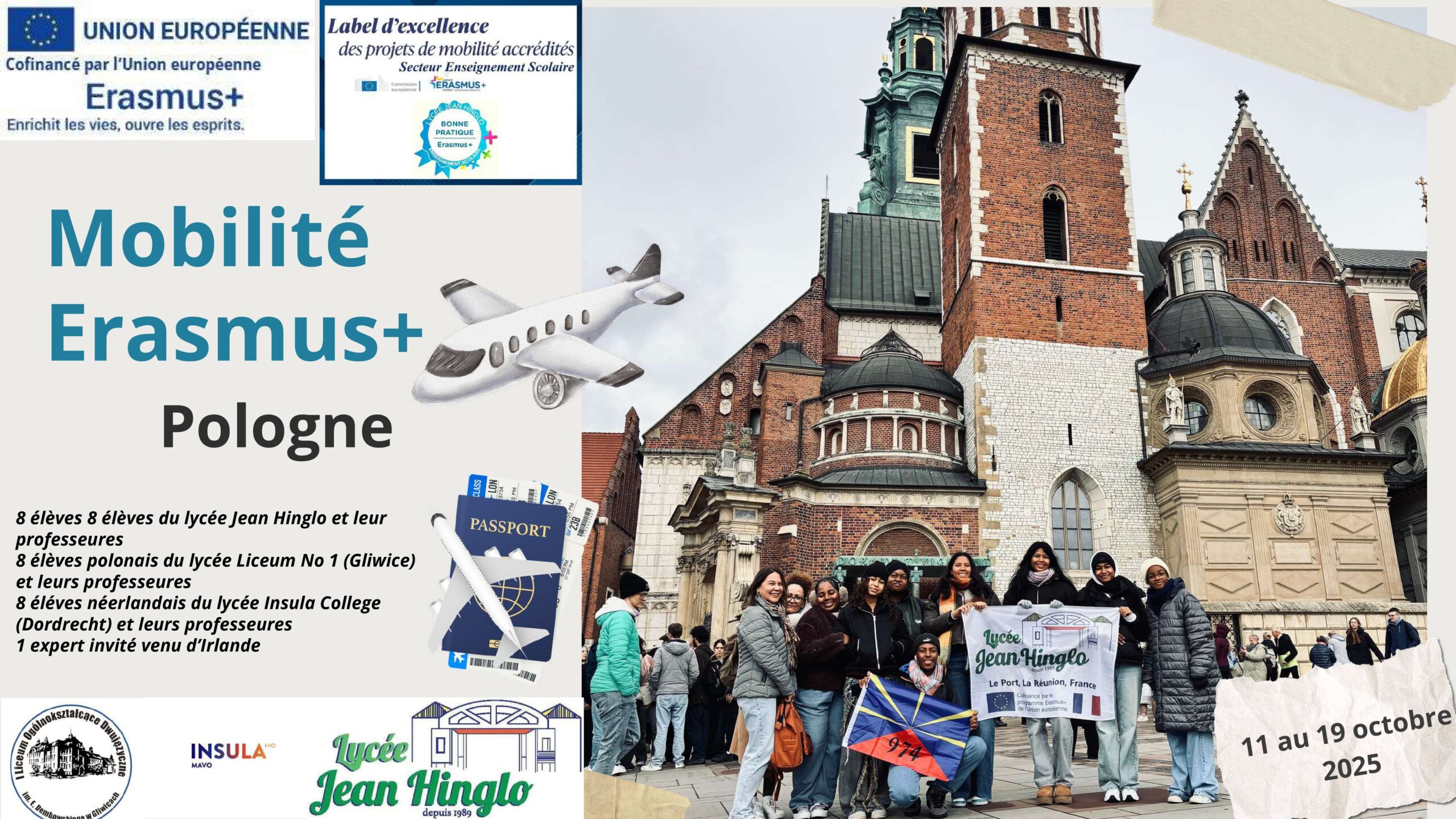 Du 11 au 19 octobre 2025, huit élèves de Terminale LLCE anglais et DNL anglais ont participé à une mobilité Erasmus+ au lycée « Lyceum n°1 » de Gliwice, en Pologne.