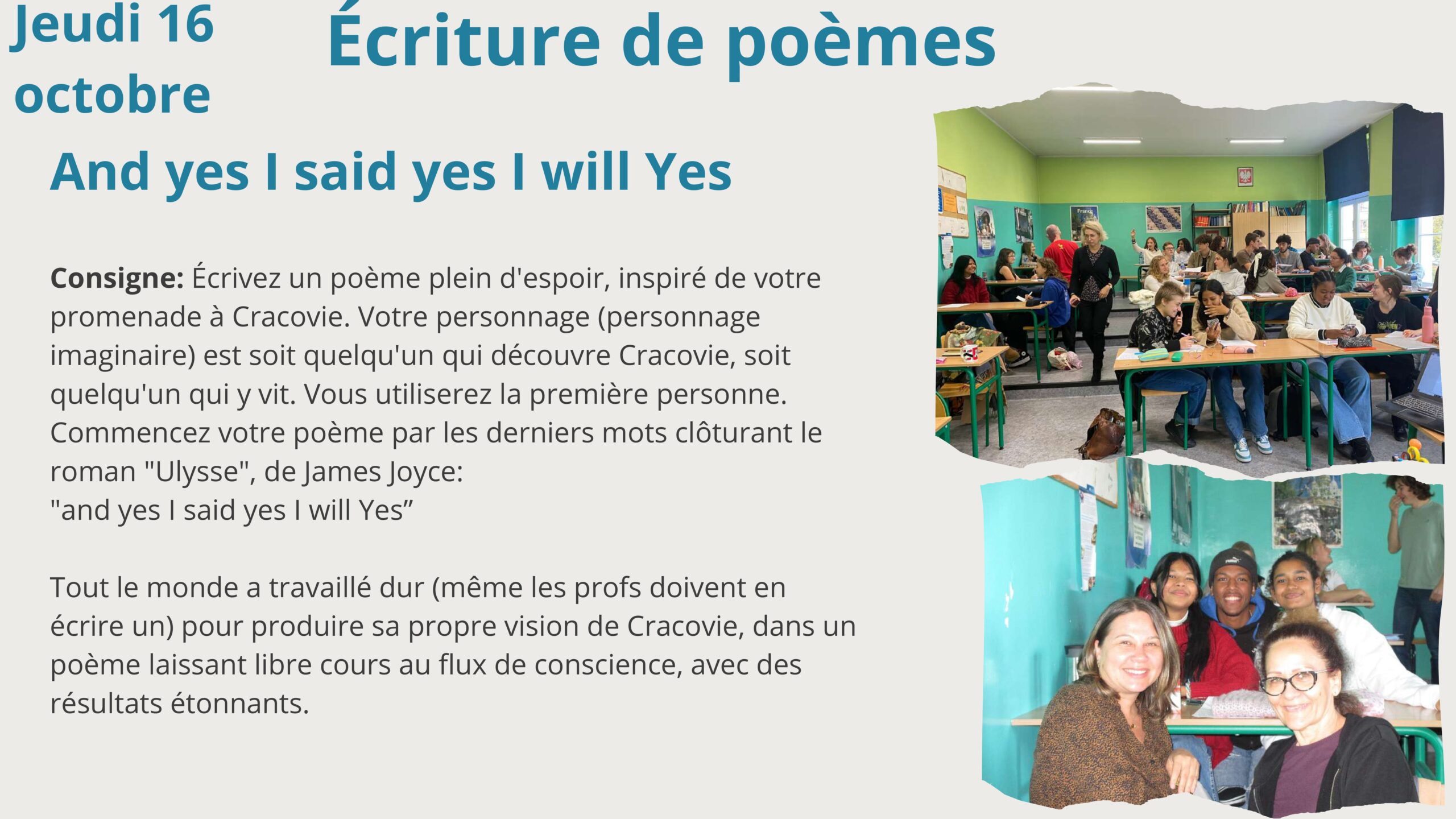 - Octobre 2025 – Pologne : autour de la poésie, pour la clôture du programme.