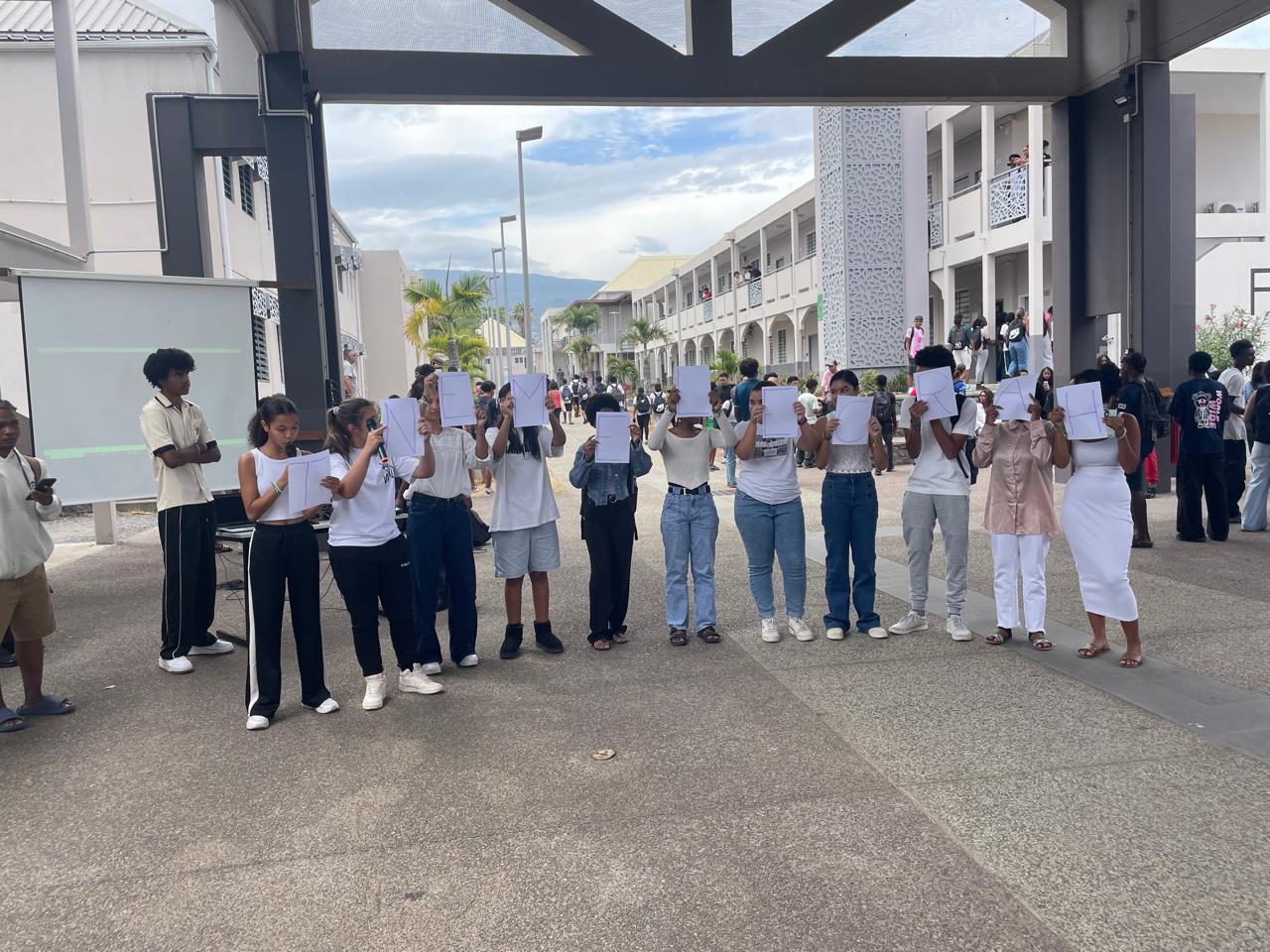 Sous le préau, durant la récréation du matin, la communauté du lycée s’est réunie pour un moment fort d’émotion et de partage :