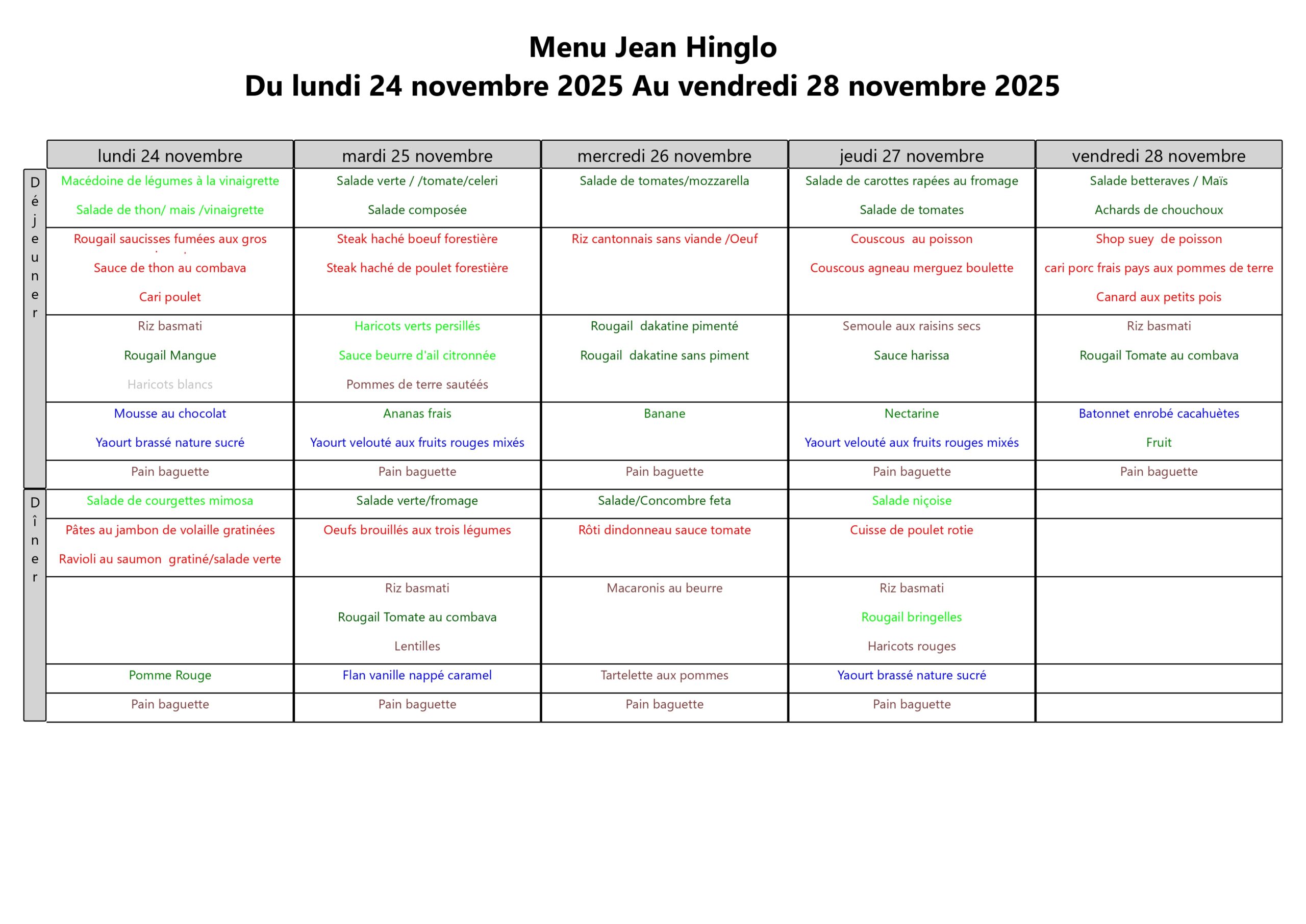 Accueil»Menus»Restaurant scolaire : Menus du lundi 24 au vendredi 28 novembre 2025