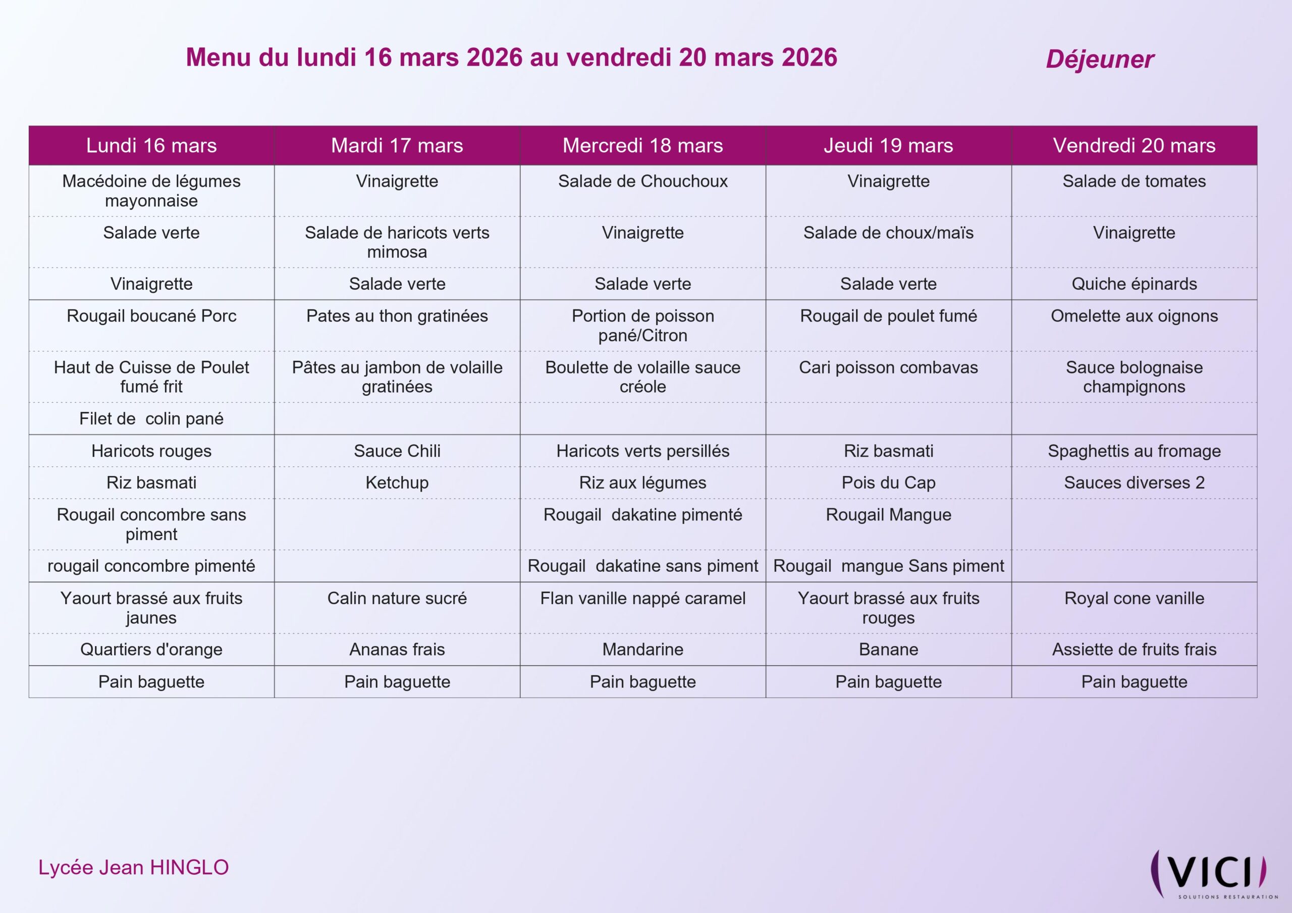 Le Chef de cuisine et sa brigade vous accueillent dans notre restaurant scolaire, situé au cœur du lycée. Les repas proposés sont variés, équilibrés et de qualité, d’autant qu’ils sont préparés sur place au sein de notre cuisine autonome.