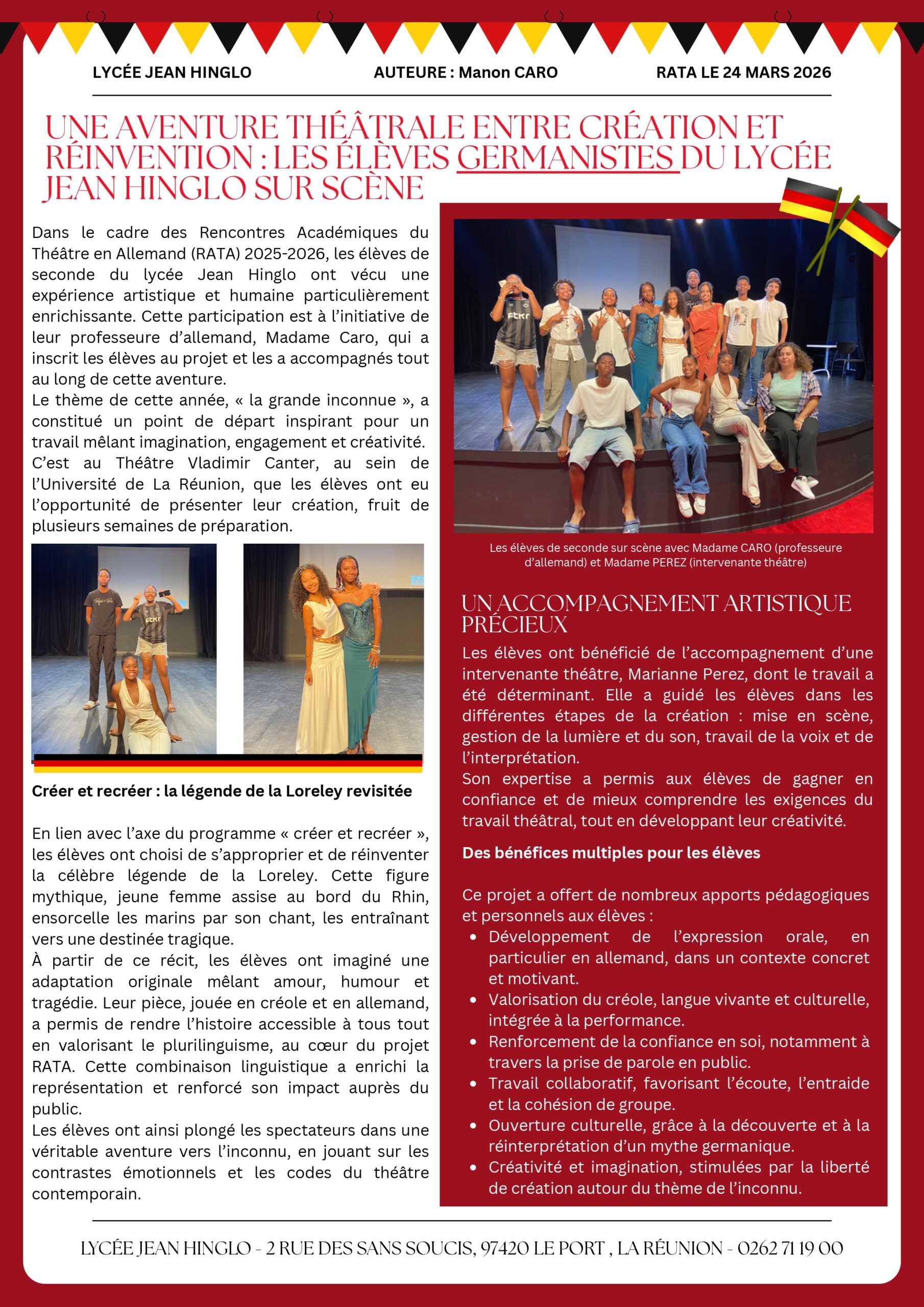 Une aventure théâtrale entre création et réinvention : les élèves germanistes du lycée Jean Hinglo sur scène