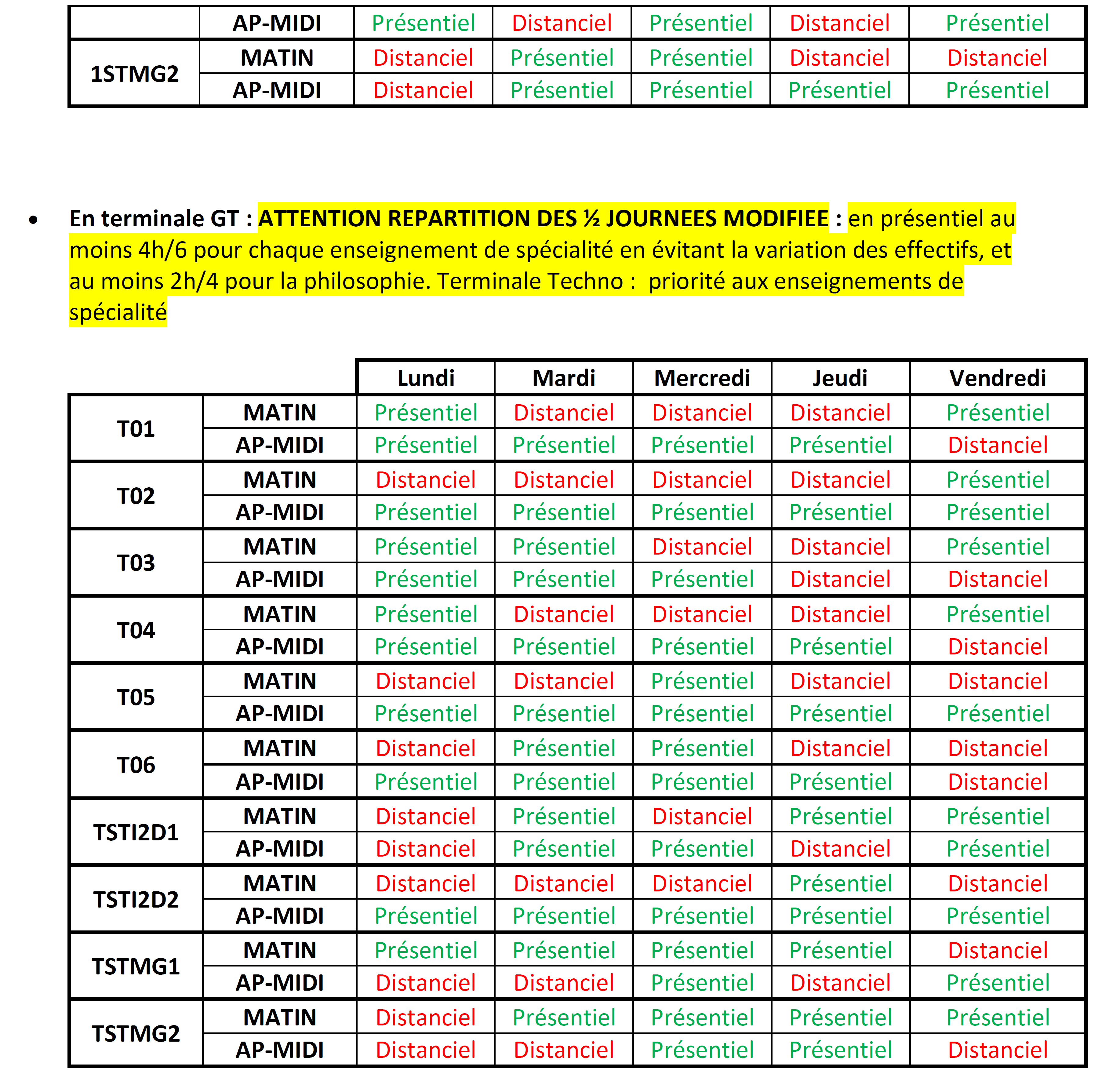 • Calendriers PFMP