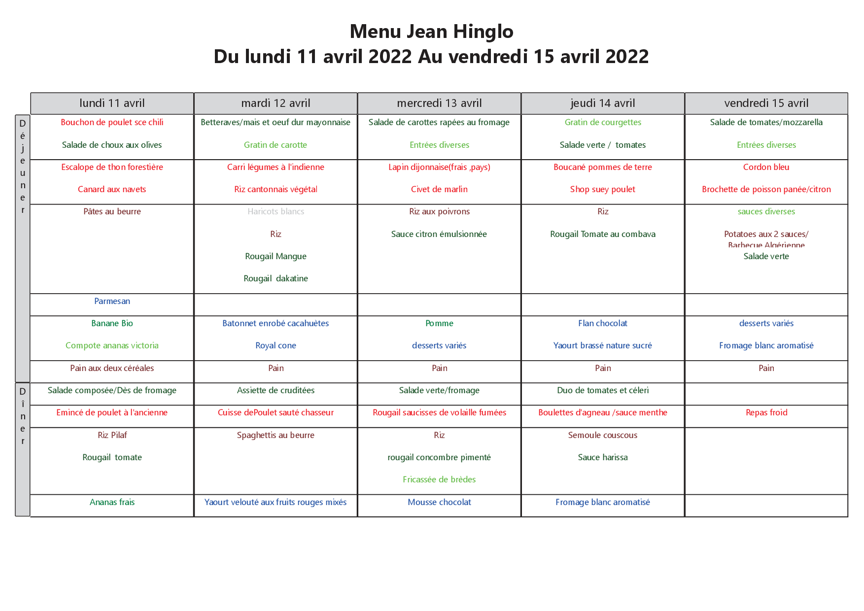 Accueil » Menu du 11 au 15 avril 2022