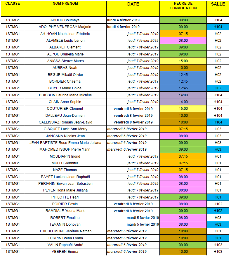 Colorations optionnelles du BTS NDRC
