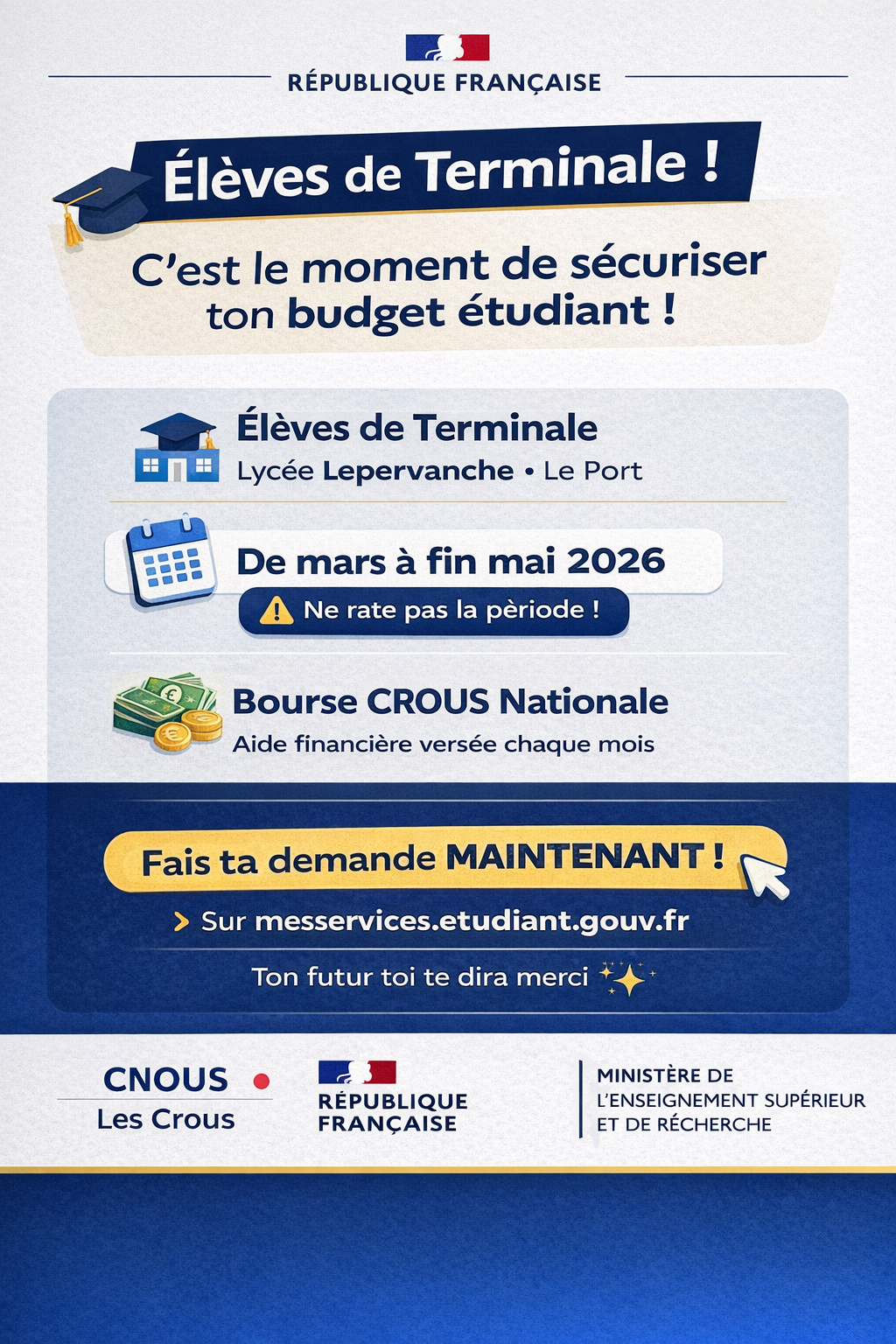⚠️ ALERTE aides financières 2026-2027- Elèves de Tales et futurs-es étudiants-es de la Réunion ⚠️