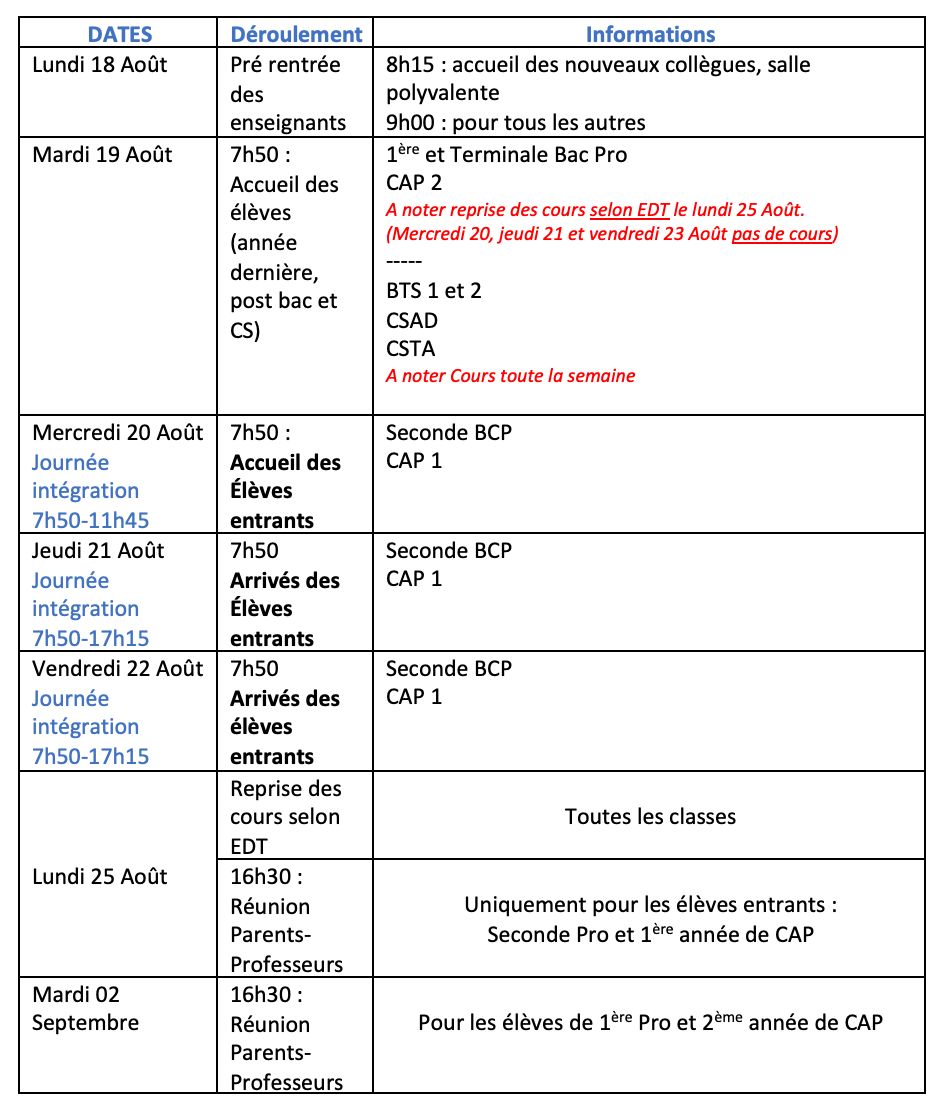 Dates de rentrée Août 2025 par Virassamy | Août 13, 2025 | Actualités, Informations | 0 commentaires Principales Dates pour la rentrée: