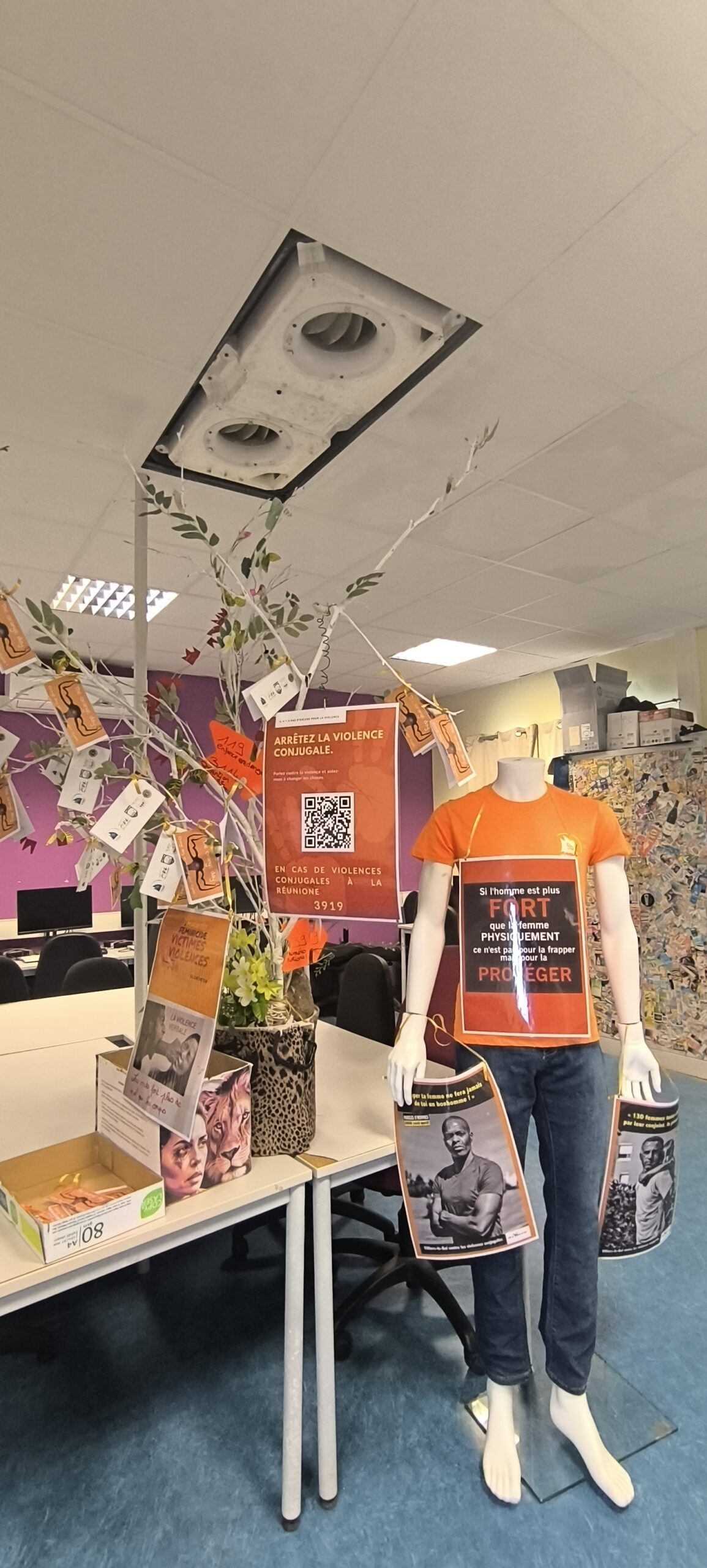 Des classes ont réalisé des silhouettes féminines porteuses de messages forts, rappelant qu’en 2024, 145 femmes ont perdu la vie sous les coups de leur conjoint. D’autres élèves ont distribué des protections pour verres afin de prévenir les risques liés aux drogues lors des soirées.