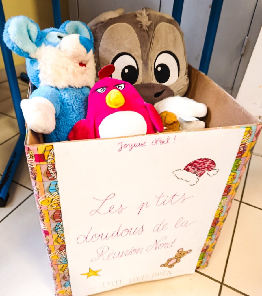 Cette année, les élus du CVL ont décidé de faire une action citoyenne et solidaire à l’occasion de Noël avec l’aide des enseignantes Mme Benmalek et Mme Plasse. Grâce à la mobilisation des élèves et de tout le personnel de l’établissement, le lycée Louis Payen a pu récolter de nombreux jouets pour les enfants. Les doudous et les livres ont été remis à l’Association « Les ptits doudous de la Réunion Nord ».