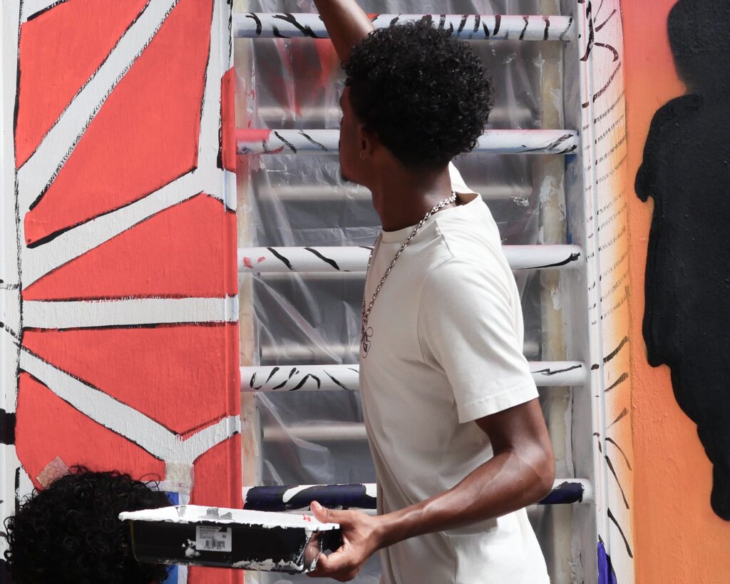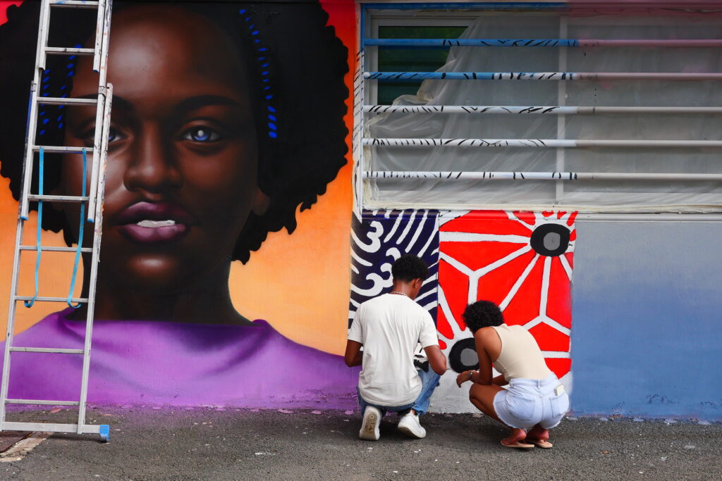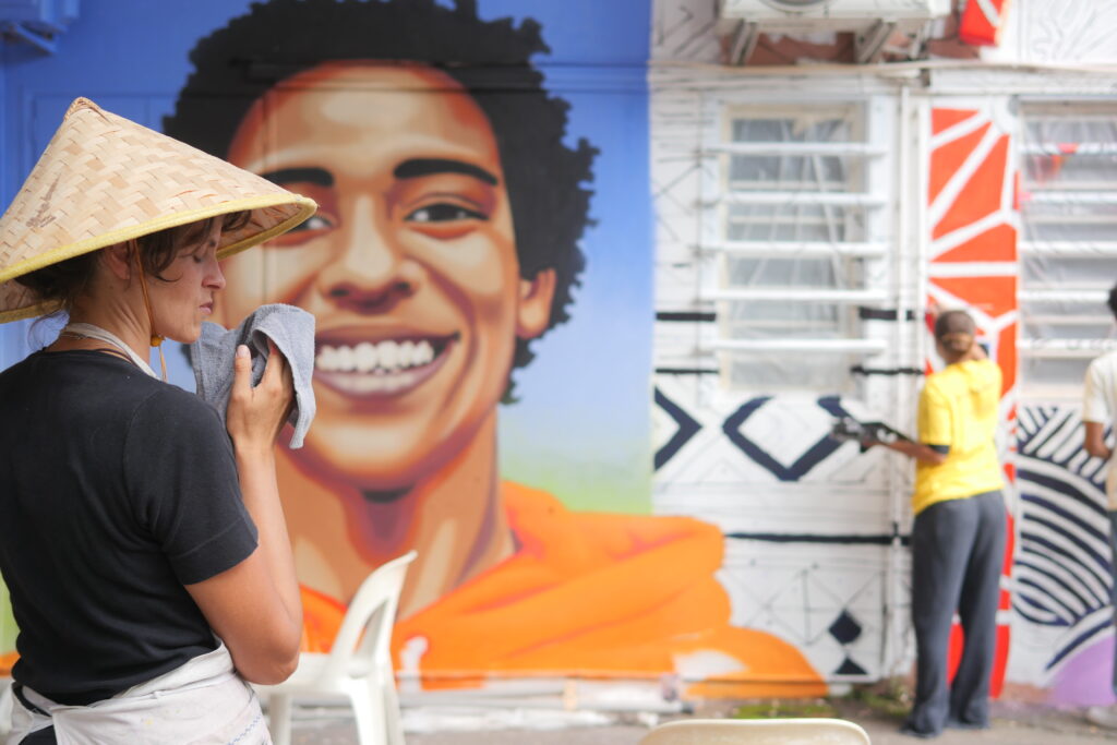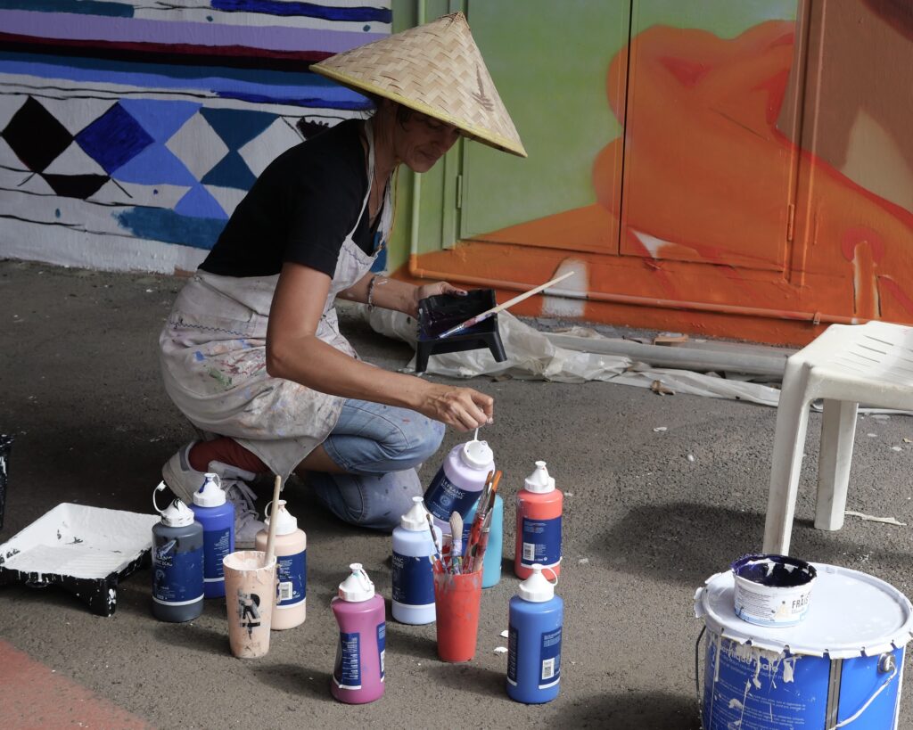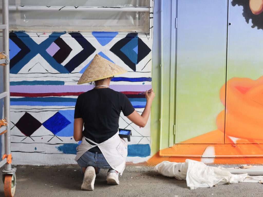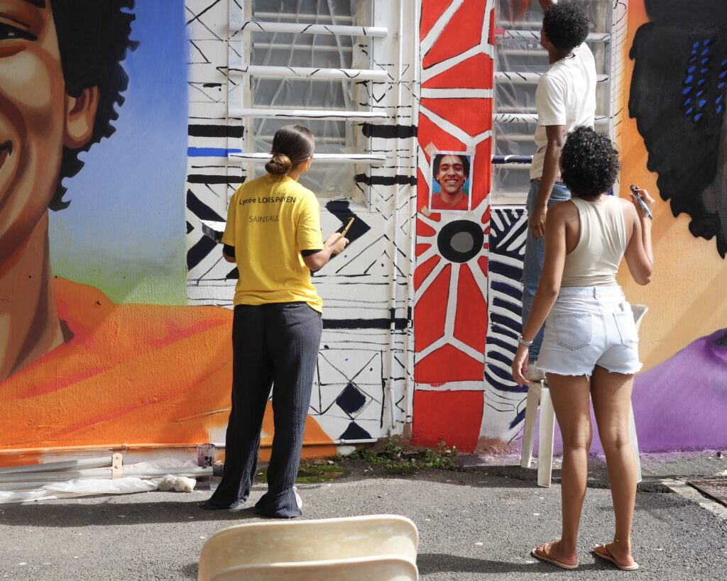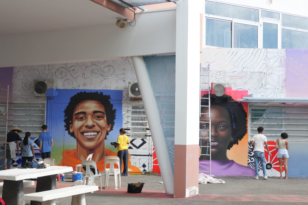 Depuis le mois de février, l’artiste Mo Armen intervient au lycée pour peindre une grande fresque sur le mur de la cour du lycée. Ce projet a été élaboré avec des élèves volontaires du lycée.