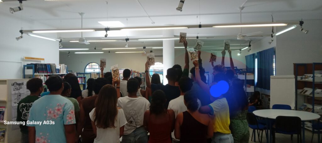 « Rencontre avec un.e auteur.e » est un parcours d’éducation artistique et culturelle proposé par l’association « La Réunion Des Livres ». Ce PEAC a permis aux élèves de 203 de rencontrer Reine-Lyse Tecchio, auteure de Inès ou l’ivresse de l’ailleurs, édité par l’UDIR en 2023.