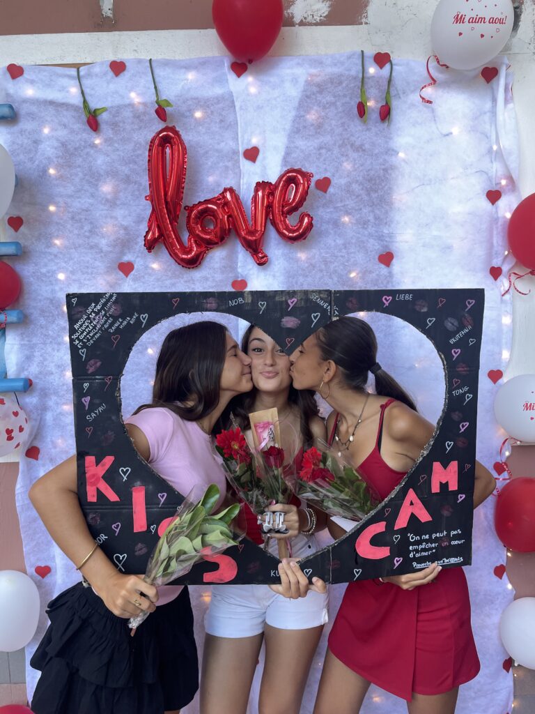 Aujourd’hui, les élèves de la MDL ont organisé une journée festive au lycée pour la St Valentin: décoration soignée, dress code, vente de roses rouges, et sourires de rigueur pour l’espace photo. Il n’était pas seulement question de célébrer les amoureux mais aussi les ami.e.s, les camarades de classe ; et toute la communauté du lycée a profité de cette bonne humeur. Comment transformer une fête commerciale et désuète en un vrai moment de partage! Bravo aux élèves et à la vie scolaire pour cette belle journée très ensoleillée.