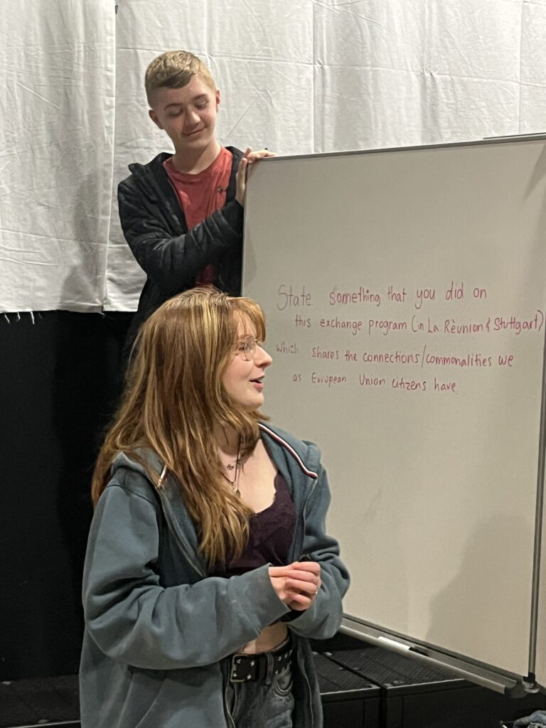 Après avoir visité le Parlement Européen, ils ont pu approfondir leur compréhension de la notion de citoyenneté à l’intérieur de l’Union Européenne à travers différentes activités menées en anglais avec leurs correspondants vivant dans la région de Stuttgart. Tous ont pu ainsi mesurer l’importance de ce qui nous rassemble au-delà des 9000 kilomètres qui séparent La Réunion du Bade-Wûrtemberg et pris conscience de la nécessité de défendre ces valeurs communes. Bravo à eux pour leur implication dans ce beau projet transfrontalier !