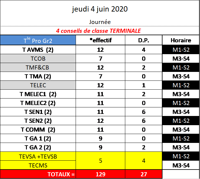 Terminale Bac pro et CAP