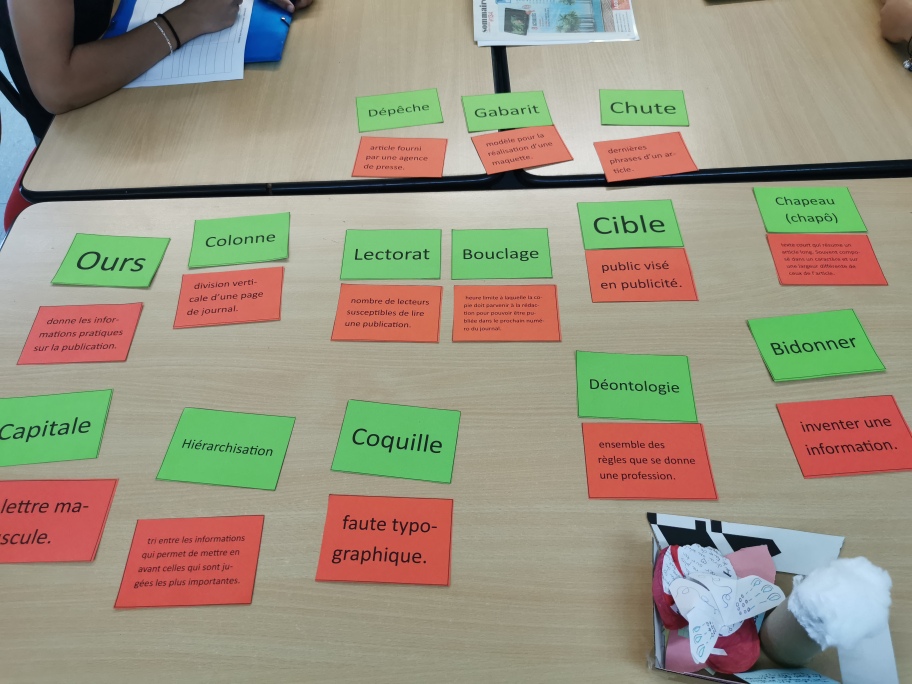 En manipulant de façon ludique des cartes « noms / définitions », ils se sont interrogés sur le vocabulaire propre à la presse.