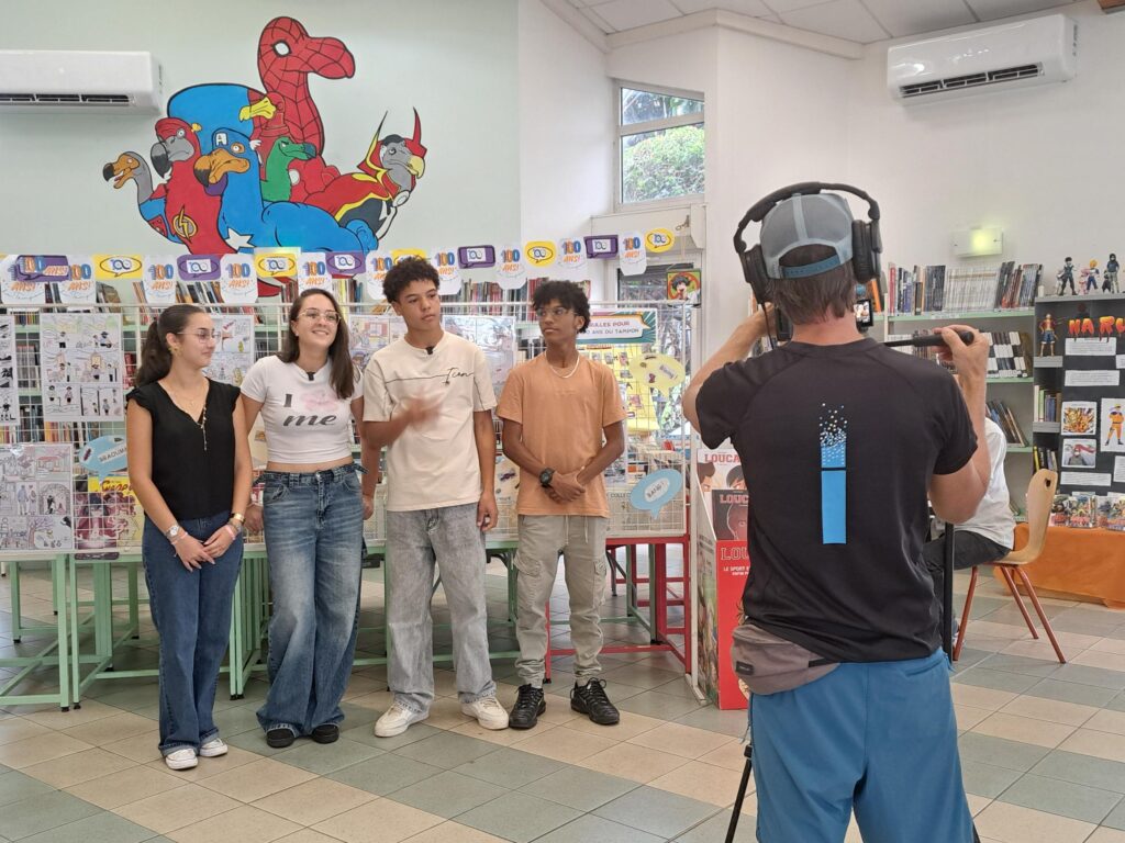 Une caméra de télévision est là pour couvrir l’événement et interroger quelques élèves : il faut maintenant verbaliser oralement cette expérience, un exercice intimidant qui n’a pas fait peur aux quatre volontaires.