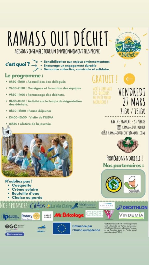 Le 27 mars dernier, les éco-délégués du lycée Lagourgue ont participé à l’action « Ramass out déchet » organisée par les élèves de l’EGC, école de Commerce de Saint-Denis.