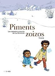 Piments zoizos quant à lui vient parler d’un projet autre que l’esclavage, le déplacement des enfants réunionnais à l’époque du Bumidon ; ce projet viens prendre les enfants réunionnais dont les parents sont en difficulté pour gérer les enfants. Cet album est écrit d’une manière spéciale où les couleurs montrent différentes époques pour le personnage principal : son enfance et son adolescence à La Réunion puis en métropole ; sa période de recherche en tant qu’adulte pour retrouver sa famille à La Réunion, ou ne serait-ce que des traces de sa famille ; et enfin une partie avec un autre personnage, qui travaille à la préfecture, et qui va lui donner des infos afin de l’aider dans sa recherche.