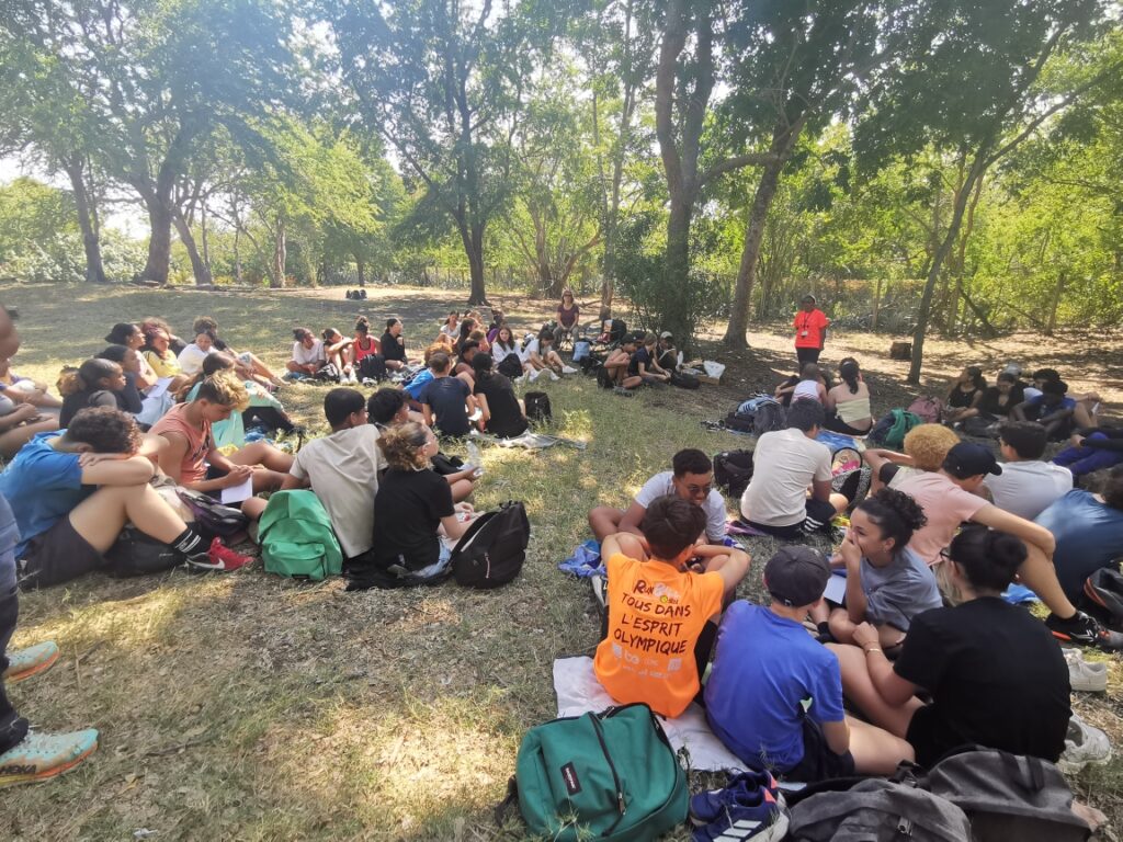 Vendredi 29 août 2025, les élèves de 2nde 1 et 7 ont été réunis pour une journée de cohésion à la forêt de l’Etang-Salé. Ils ont rencontré M. CONTU Rémy, accompagnateur en montagne diplômé d’état, qui leur a proposé un jeu de piste éducatif.
