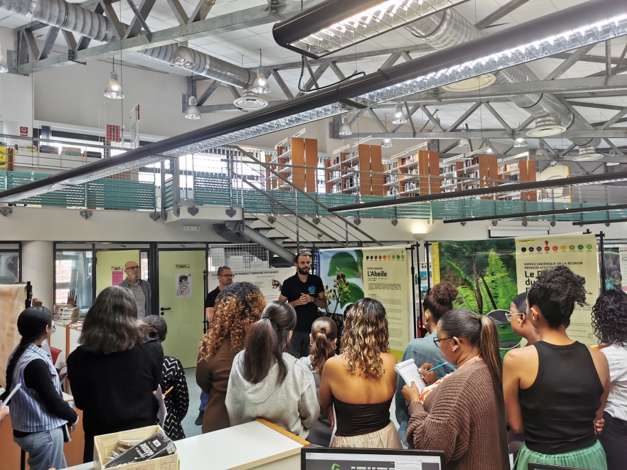 C’est ainsi que Mathieu QUIRIET, responsable flore, leur a présenté l’exposition du CDI « Histoire des Hommes et des Espèces à la Réunion » de façon interactive et ludique.