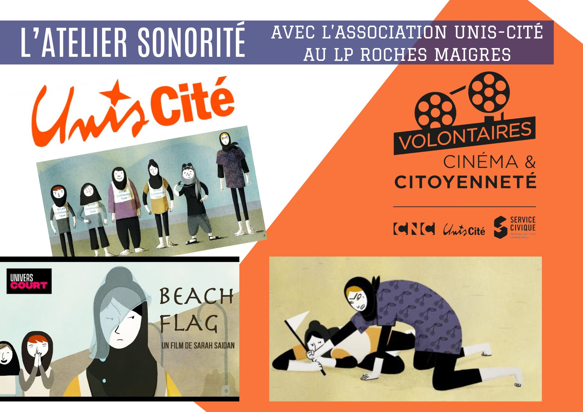 L’Atelier Sororité a le plaisir d’accueillir depuis novembre dernier, 2 bénévoles de l’Association Unis- Cité dans le cadre du Programme national « Cinéma et Citoyenneté ». Elles viendront pour les 2 dernières séances de Ciné-débat les jeudis 16/04 et 21/05 (salle vidéo du CDI de 12h à 12h45).
