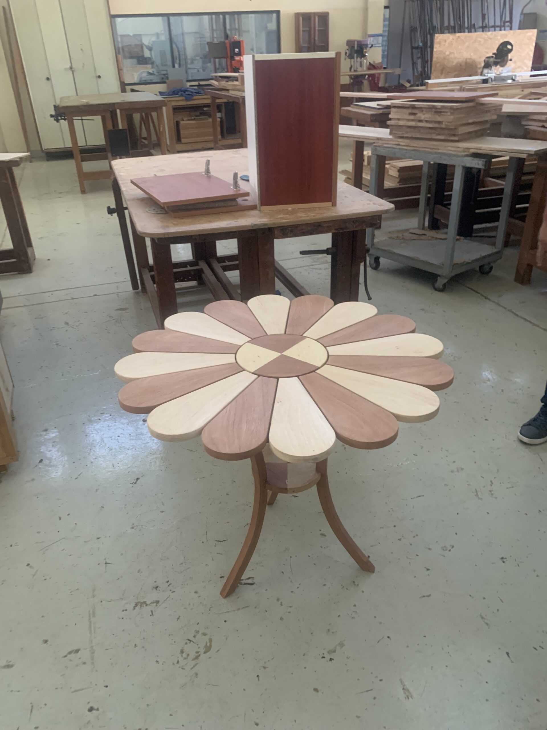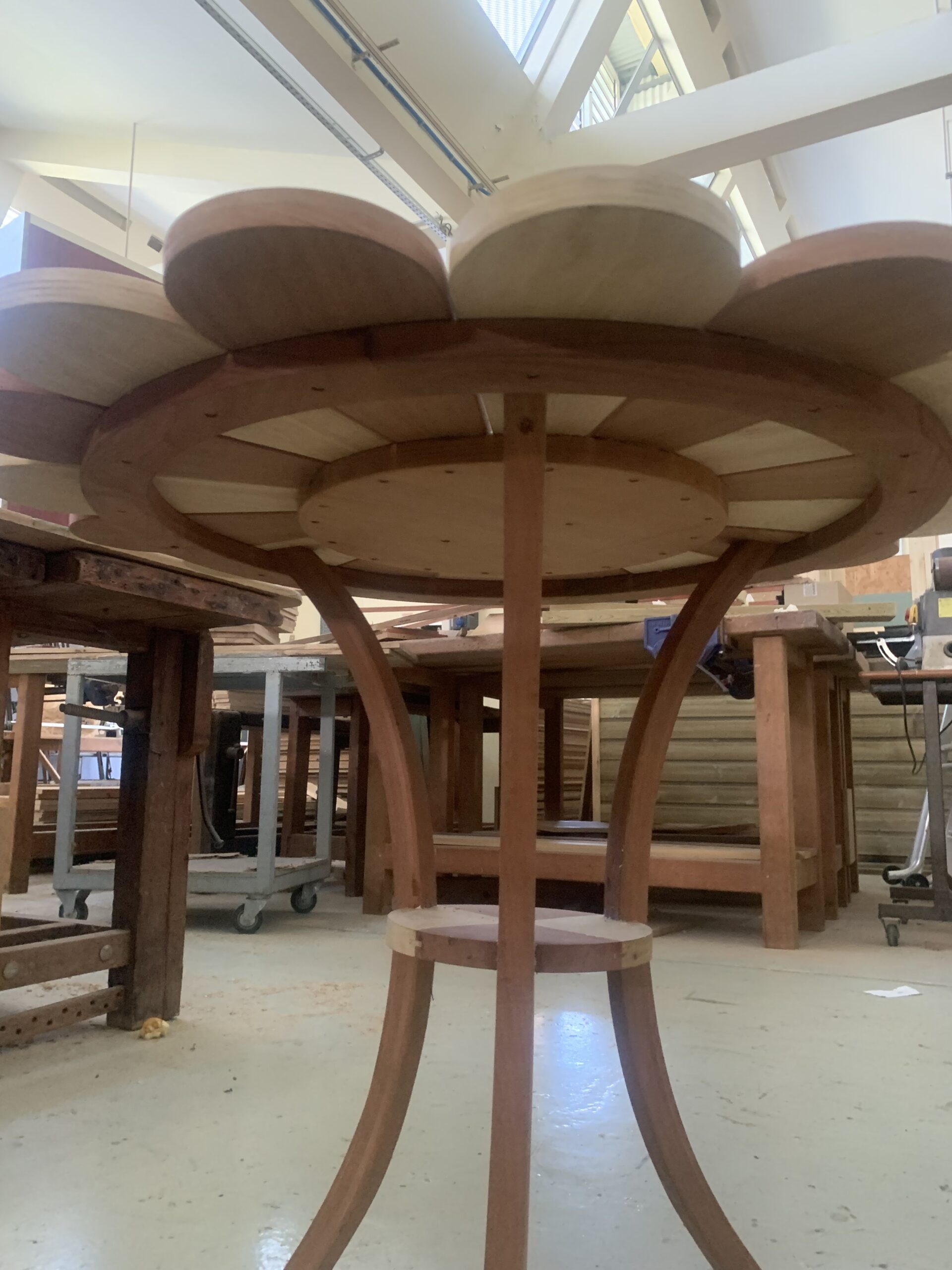 – Plateau de table réalisé à la commande numérique + finition des formes des 16 pétales