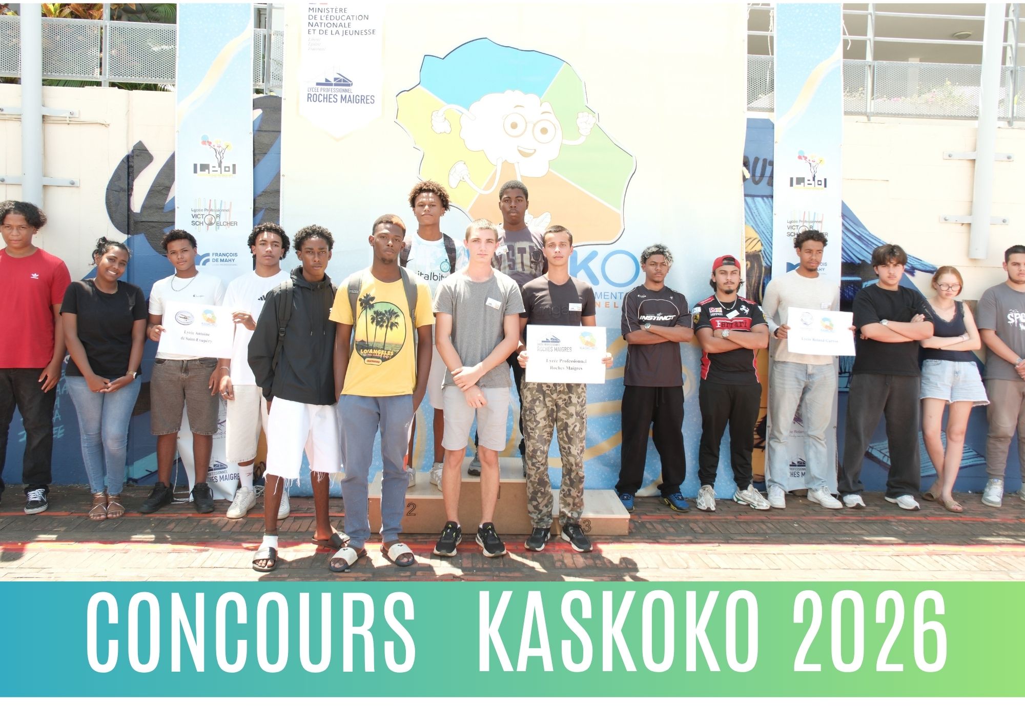 Nous remercions également les agents du lycée Roches Maigres, ainsi que l’ensemble des professeurs et des élèves ayant aidé à l’installation et à la mise en place de cet événement, et tous les établissements participants : lycée Bois d’Olive, lycée polyvalent Boisjoly Potier, lycée professionnel Victor Schoelcher, lycée professionnel François de Mahy, lycée Antoine de Saint‑Exupéry, lycée professionnel Paul‑Langevin et lycée Roland‑Garros.