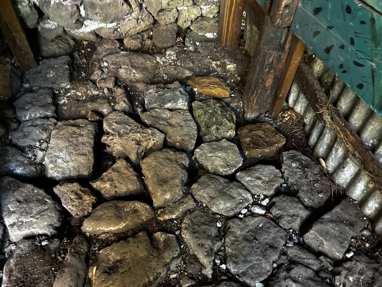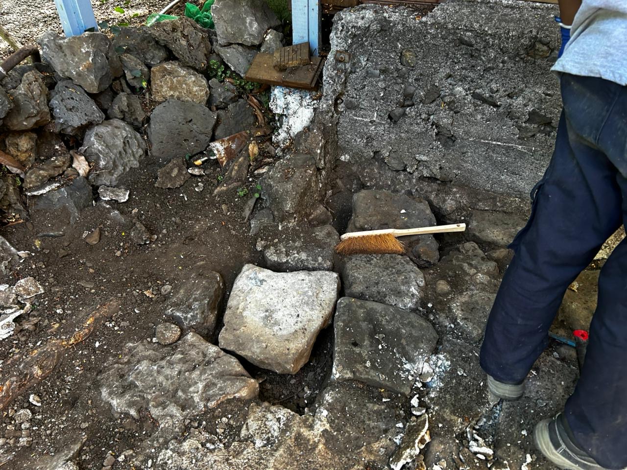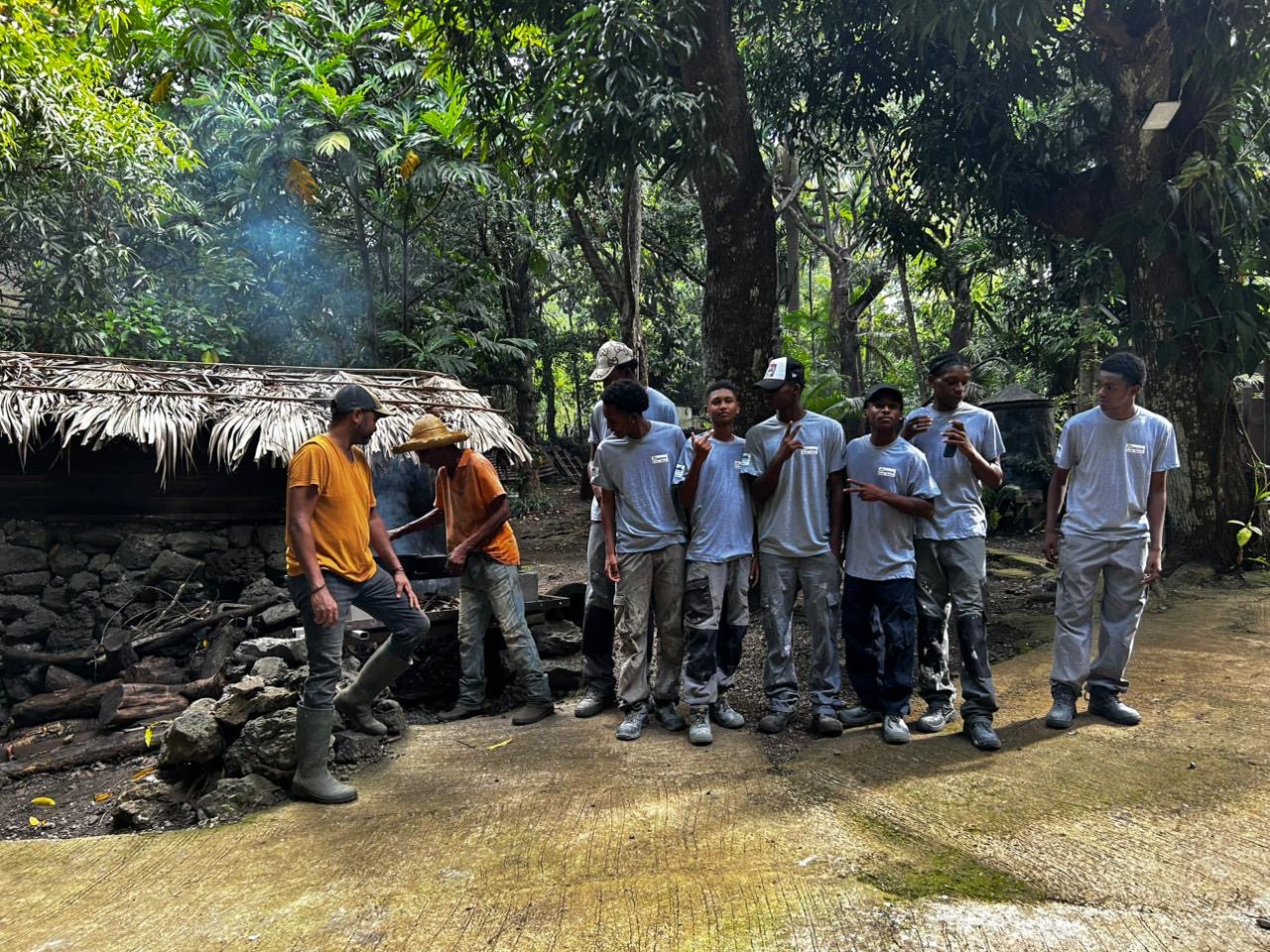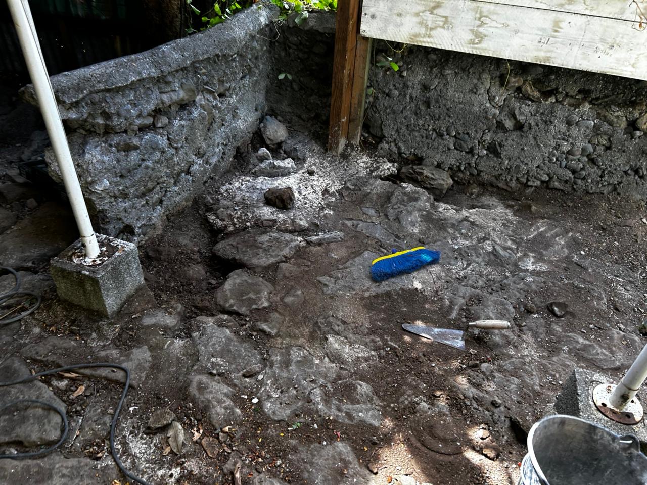 👉 Le chantier débute par la rénovation de l’Argamasse : aire plane constituée de roches volcaniques servant à sécher le café au soleil.
