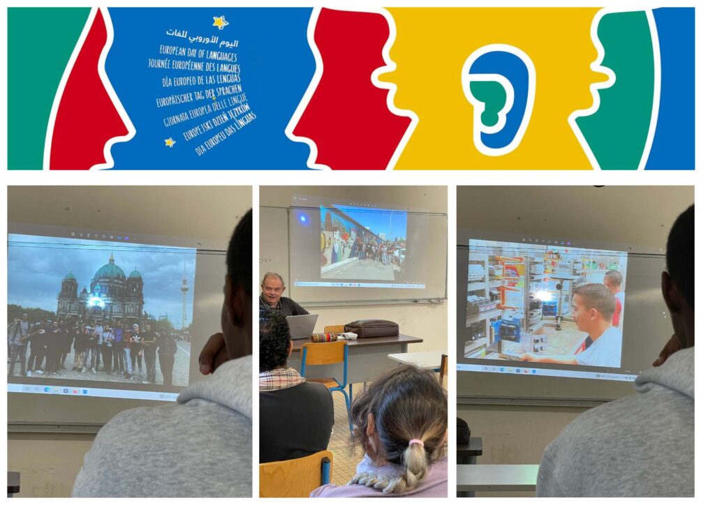 Le mardi 23 septembre, plusieurs enseignants du lycée Roches Maigres se sont mobilisés pour proposer diverses animations pédagogiques en l’honneur de la Journée européenne des langues. Douze classes ont pu bénéficier de ces ateliers de découverte, organisés sur 30 minutes et animés par des professeurs volontaires : Mme Mourier, Mme Caro, Mme Giberné, Mme Rangama, Mme Naceur, M. Deiber, M. Doury, M. Pomarede, Mme Payet et Mme Ramaye.