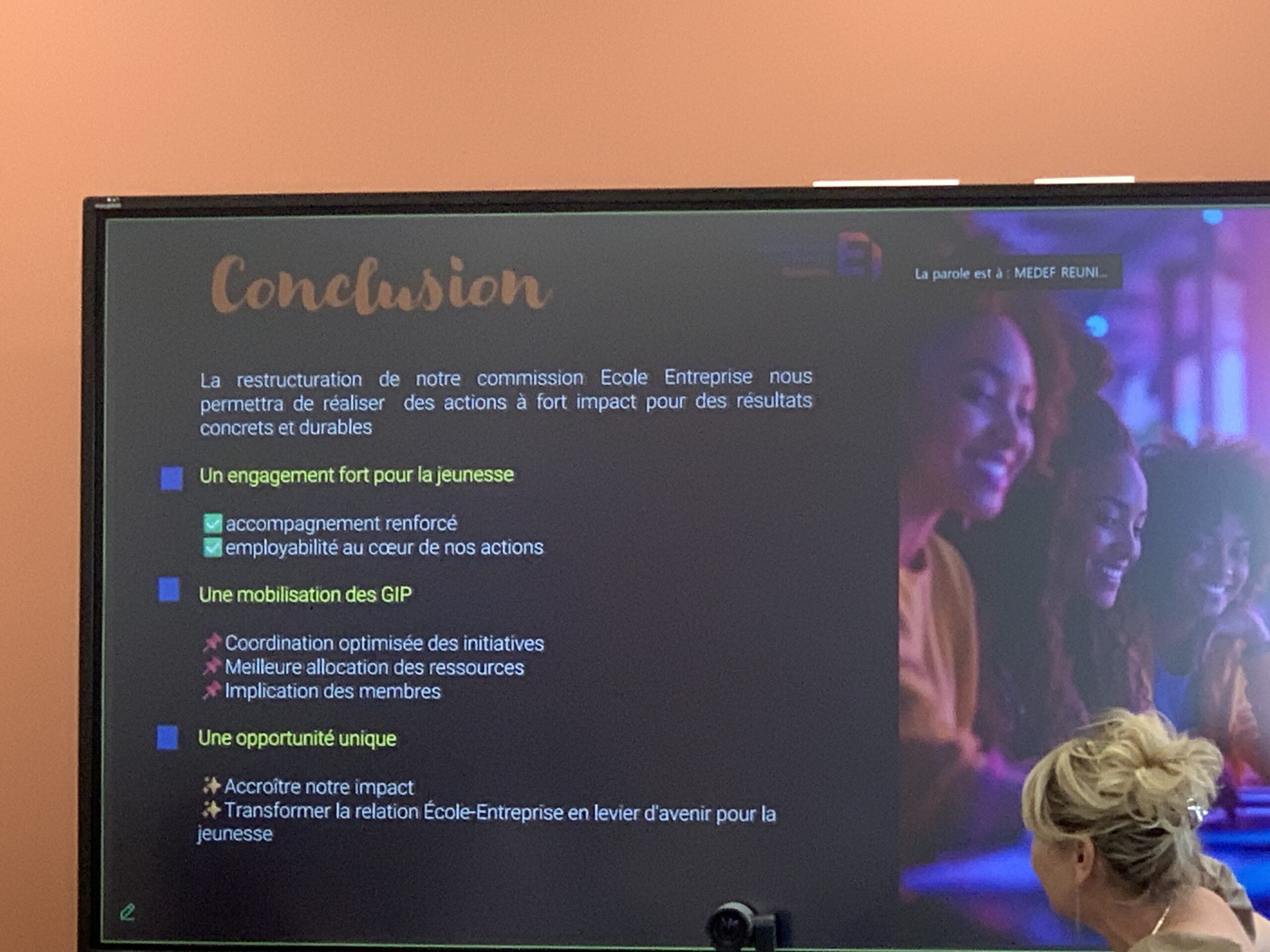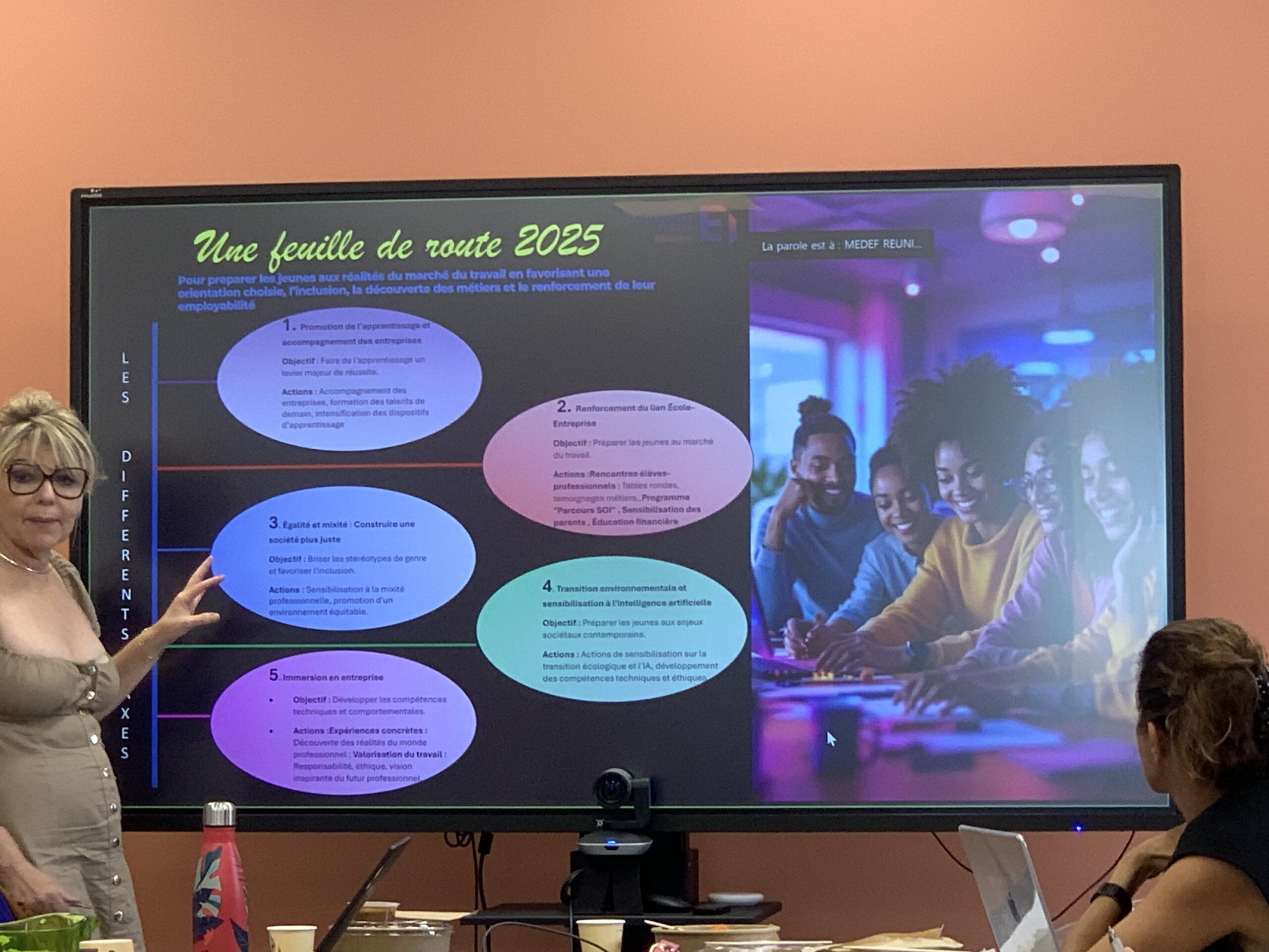📣 La Responsable du Bureau des Entreprises (RBDE) du Lycée Professionnel Roches Maigres Saint-Louis 974🇷🇪 à la Commission Ecole-Entreprise mensuelle de son partenaire le MEDEF Reunion
