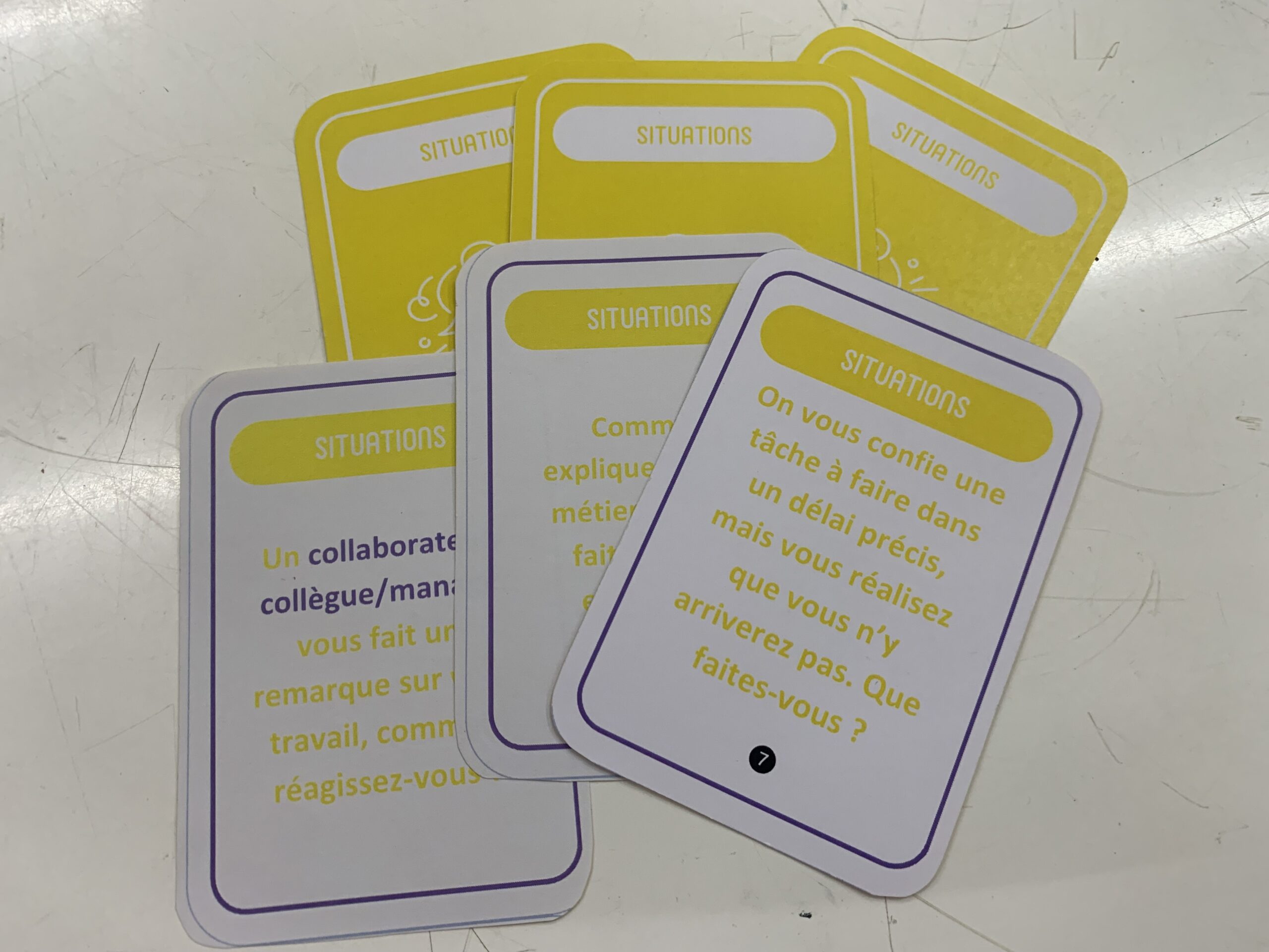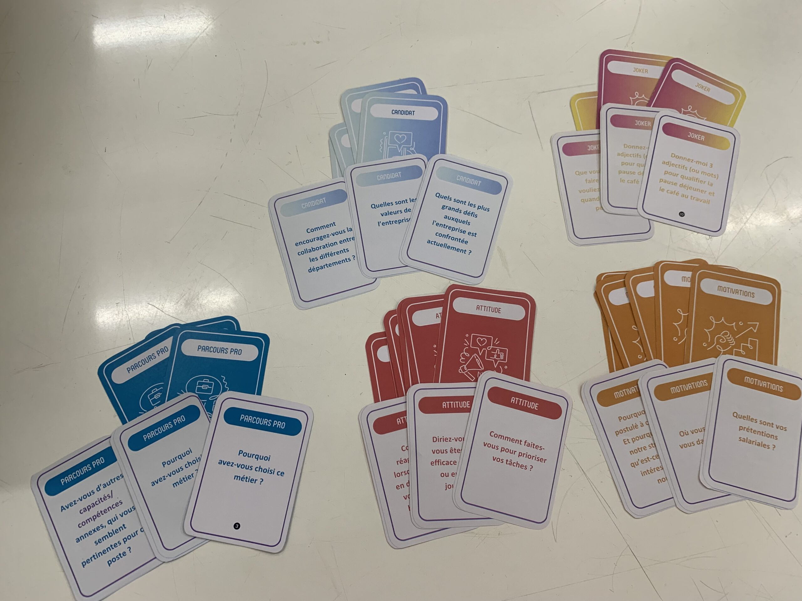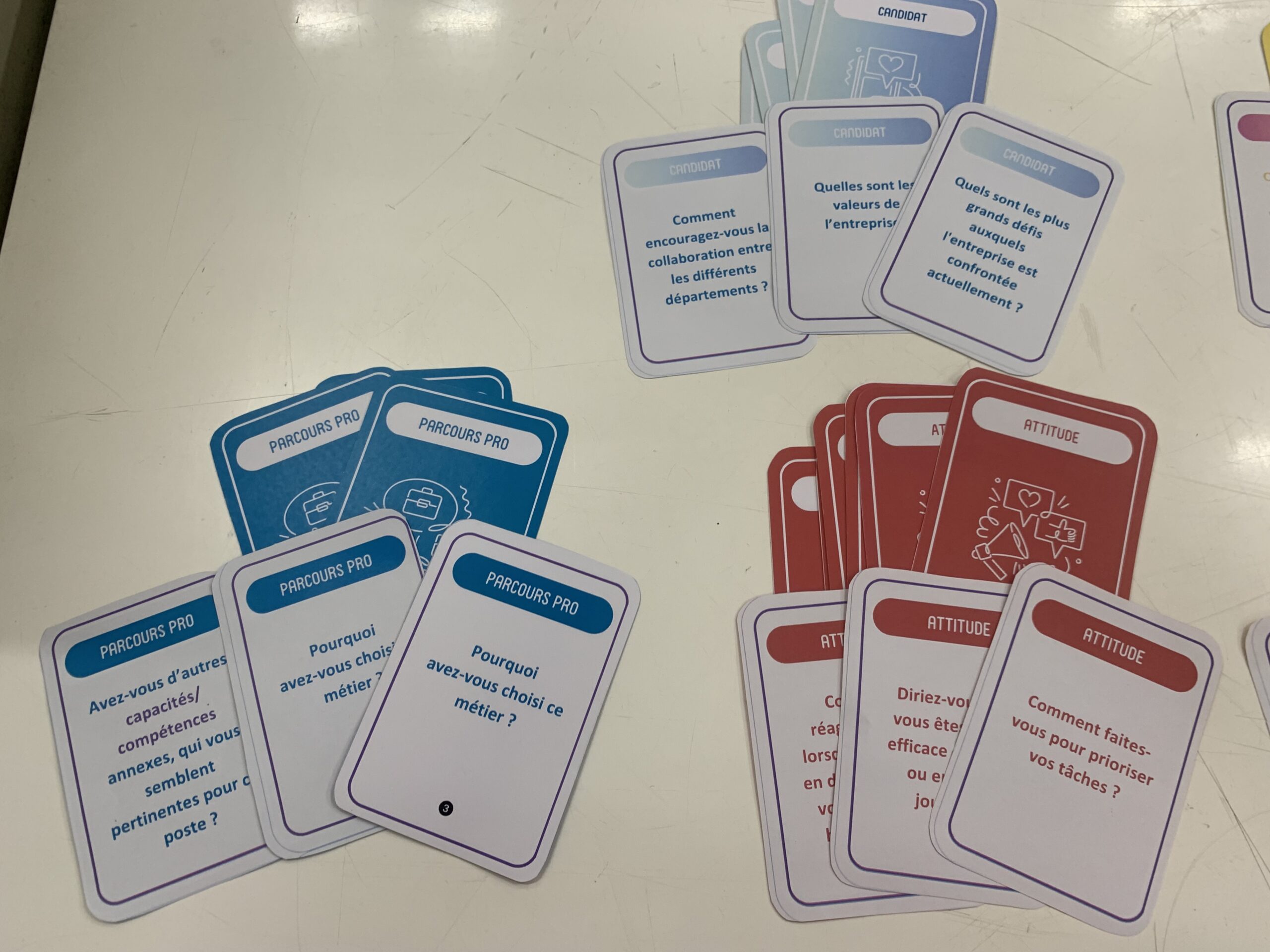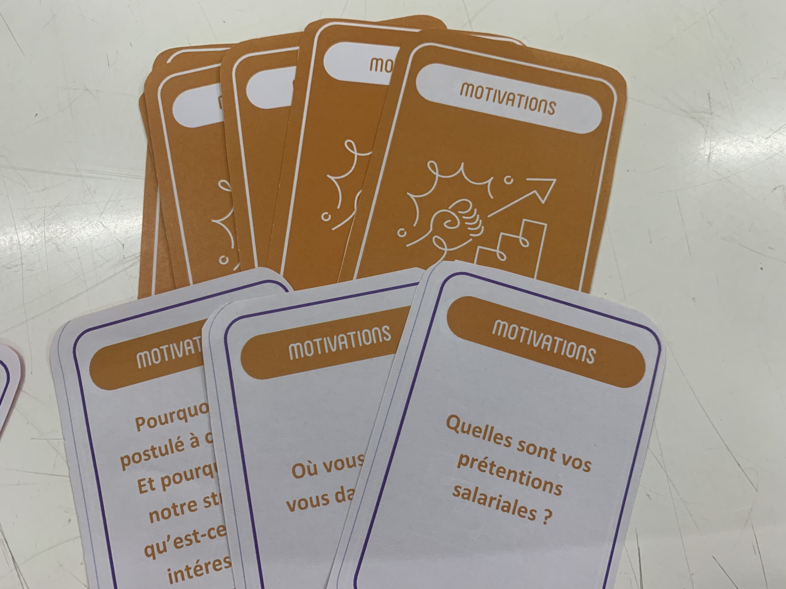👉 Un Vis ma vie composé de cartes de questionnements thématiques Attitude Motivation Situation permet aux élèves de se mettre tantôt dans la peau de l’employeur tantôt dans la peau d’un candidat tel un « VisMaVie » lors d’une simulation d’entretien de recrutement