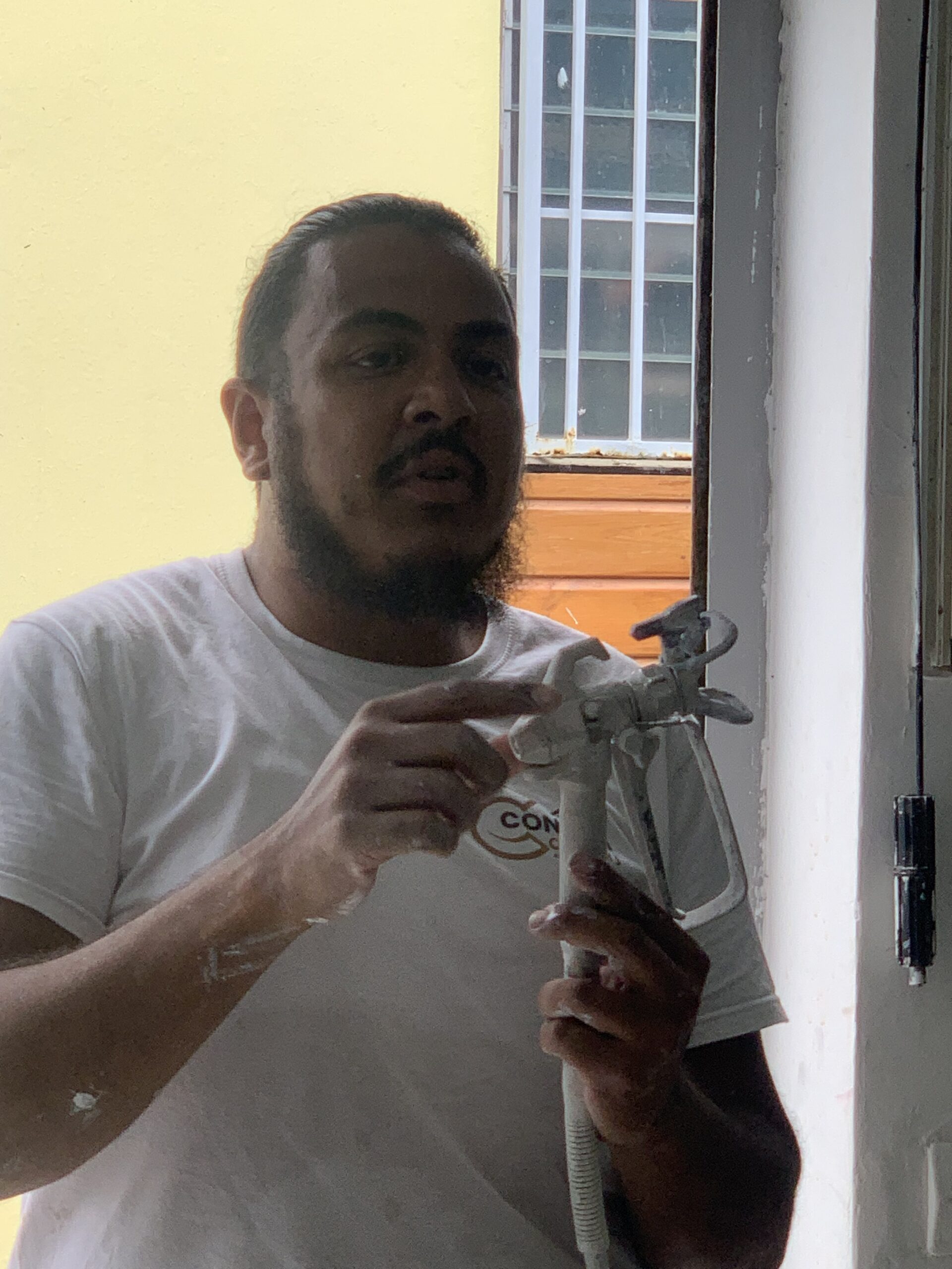 🔸Pulvérisateur de peinture airless portatif et compact [les élèves testent le matériel en couche de finition] :