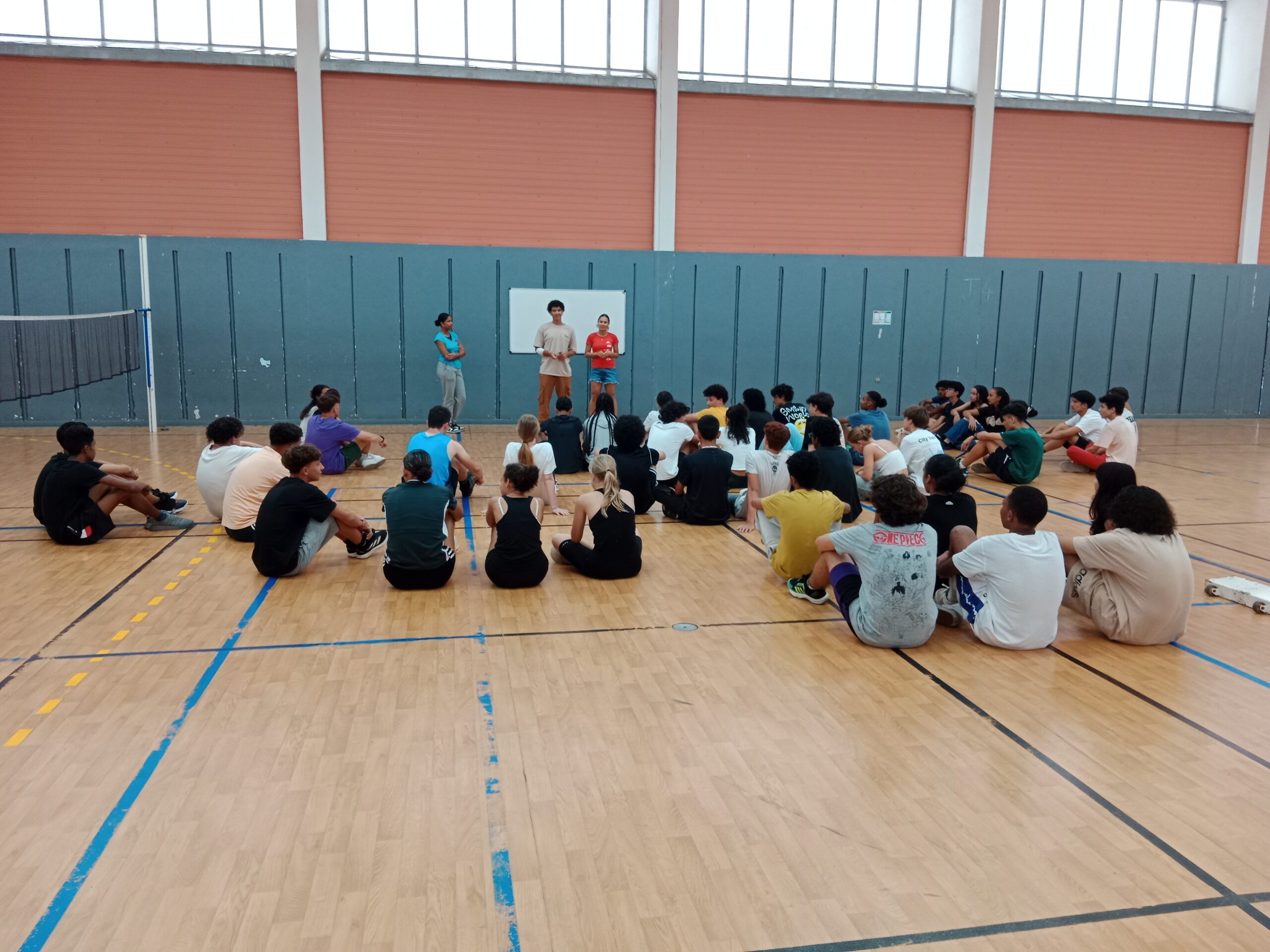 Avant tout nous avons eu une présentation d’un élève-organisateur du principe de la « Ronde à l’Italienne » dans le cadre du badminton. Celle-ci se fait en 3 temps lors d’un match, tout d’abord un match simple féminin puis un simple masculin pour ensuite se clôturer par un match mixte.