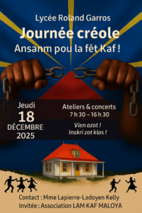 C’est hier, le 18 décembre 2025, que s’est déroulée la toute première Journée Créole au Lycée Roland Garros, un événement marquant pour célébrer notre culture réunionnaise, notre langue créole et notre patrimoine commun. À l’occasion de la Fét Kaf, nous avons eu la chance de partager un moment unique, riche en émotions et en découvertes.
