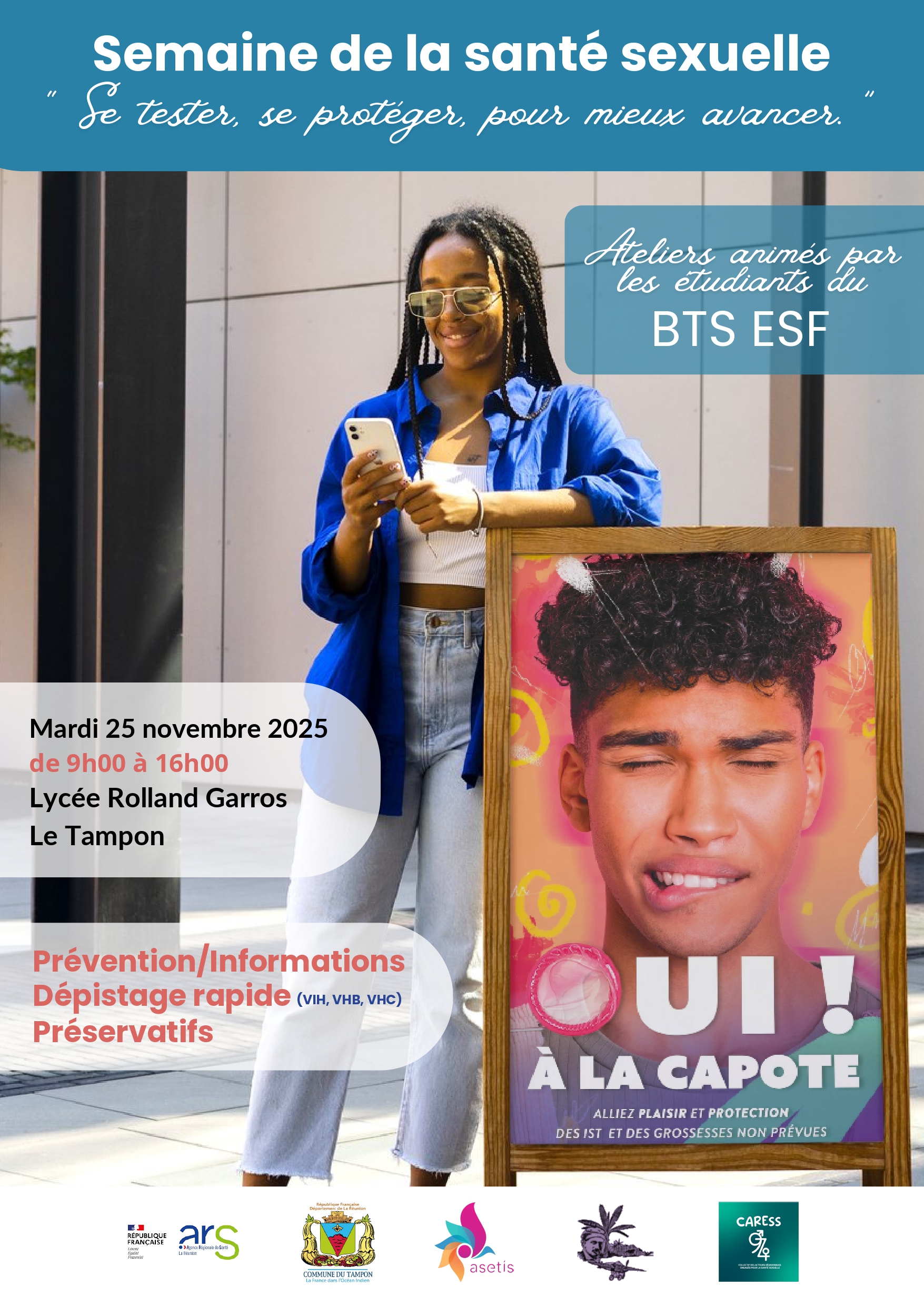 Une série d’actions visant à sensibiliser le public aux risques liés au VIH et aux infections sexuellement transmissibles (IST) ont été proposées et animées par les étudiants de BTS ESF en collaboration avec l’association ASETIS.