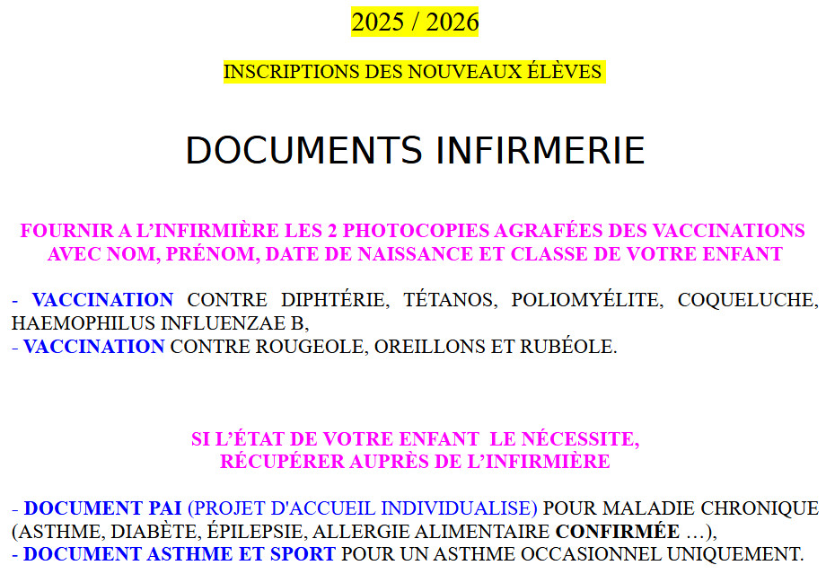 - Inscriptions pour la rentrée 2025 : dates, pièces à fournir
