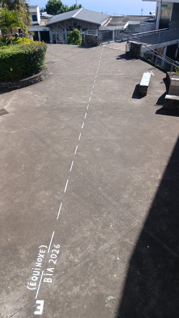 Le mercredi 18 mars, les élèves du B.I.A. ont accueilli madame Sylvie Perrigaul de l’observatoire des Makes pour une conférence sur « Le calcul historique de la longitude ». L’occasion également de profiter de l’équinoxe pour tracer le méridien du lycée. Les B.I.A. auront l’opportunité de la retrouver lors de la sortie à l’observatoire les 21 et 22 mai 2026.