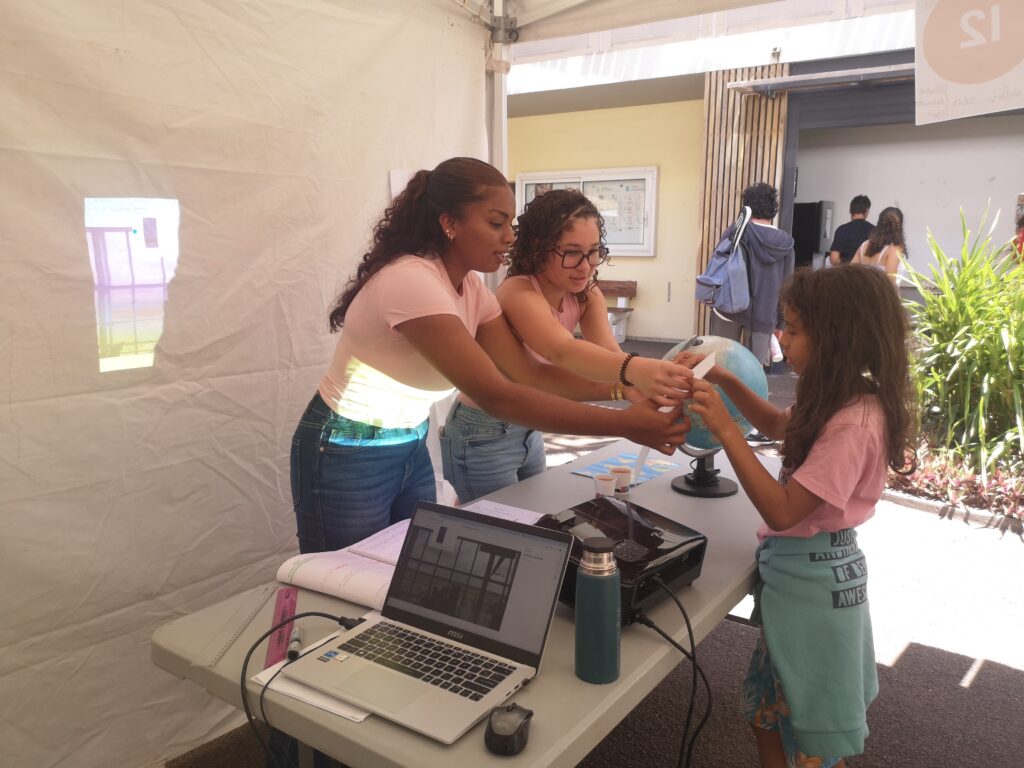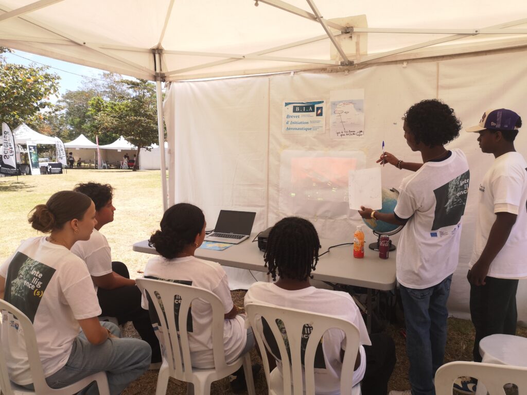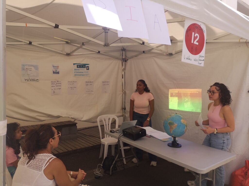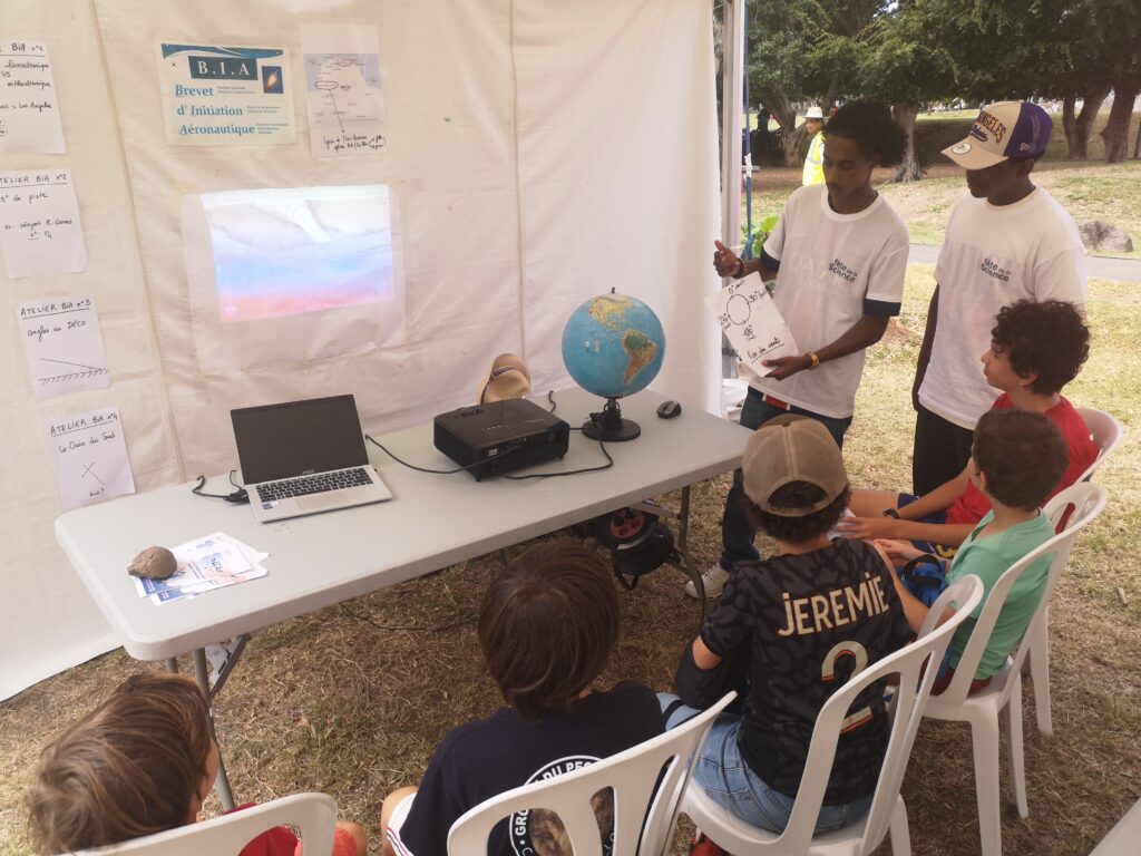 Cette semaine de la science qui a débuté le samedi 4 octobre 2025 a vu la participation des élèves du B.I.A. accompagnés de leur enseignant M. Laperche du lycée sur deux évènements. Un groupe s’est prêté au jeu lors du week-end ouvert au grand public à la médiathèque François Mitterrand à Saint Denis. Et l’autre groupe a passé la journée du jeudi 9 octobre sur le campus de Saint-Pierre pour la journée consacrée aux scolaires de l’académie. Les élèves se sont illustrés sur quatre ateliers : N° de piste d’un aéroport, distances sur le globe terrestre, les angles au décollage, la croix du sud. Retour en images.