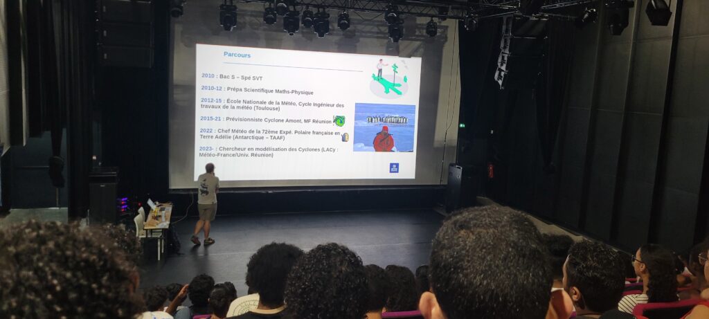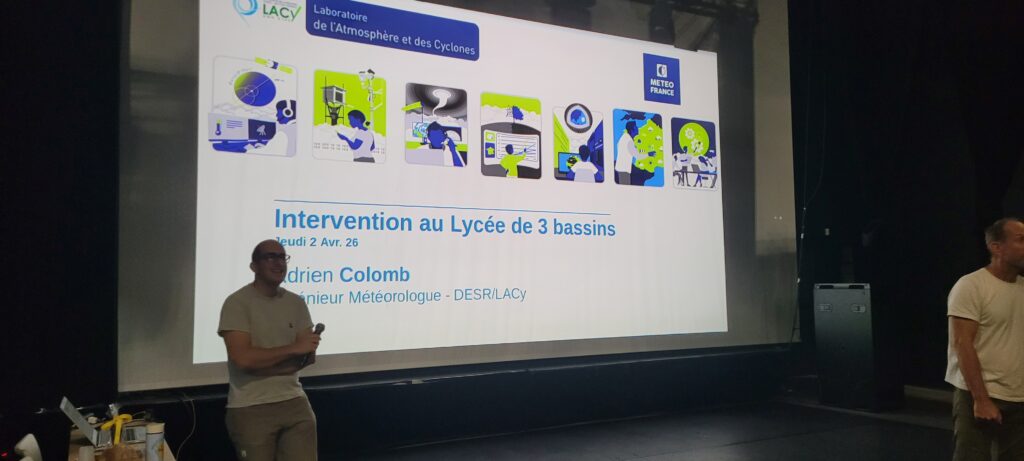 Le jeudi 2 avril 2026 toutes les classes de terminales générales se sont rendus à l’Alambic pour assister à la conférence du météorologue Adrien Colomb. Il a d’abord parlé de son parcours et a présenté la filière pour faire l’école de météorologie. La conférence s’est ensuite attachée sur la météo et le climat. Les élèves ont ensuite pu poser les questions. Comme chaque année depuis trois ans une conférence très intéressante.