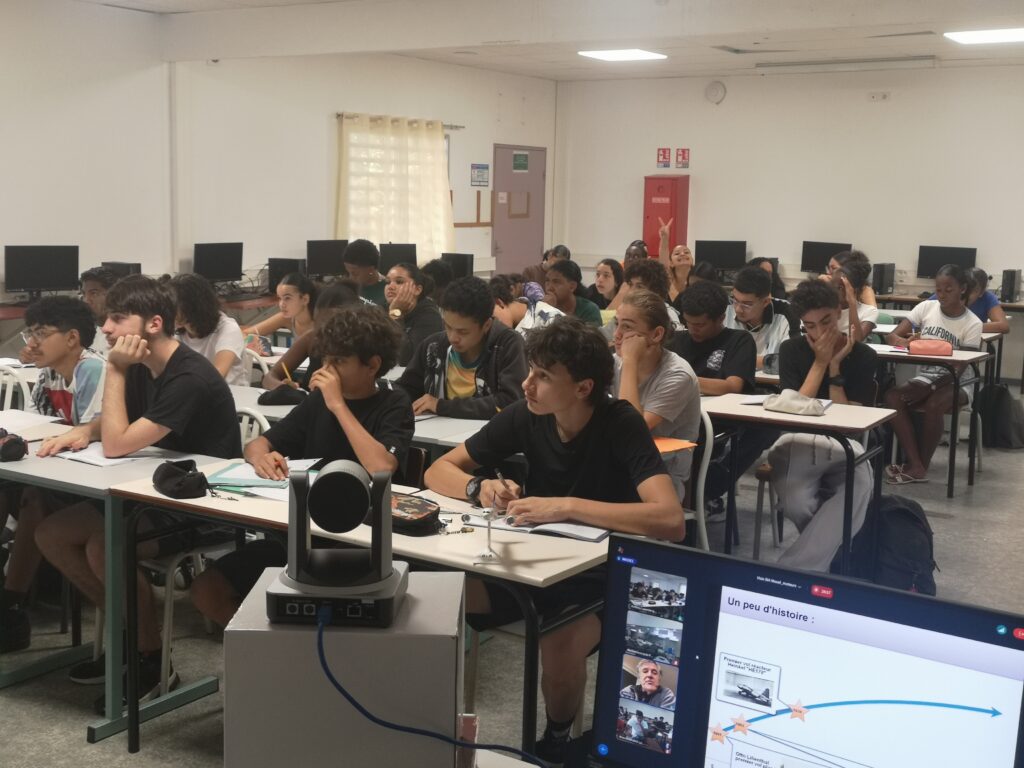 Le mercredi 17 décembre, les élèves du B.I.A. du lycée ont eu l’opportunité d’échanger avec M. Massé ancien directeur technique de SAFRAN Engines en visioconférence depuis l’hexagone. Pendant une heure quinze, il a détaillé le fonctionnement des moteurs d’avion et d’hélicoptère ( turbo réacteur, turbo propulseur, turbo moteur). Les élèves ont pris des notes puis est arrivé le moment des questions. Pendant trente minutes les élèves ont pu interroger ce spécialiste de l’aéronautique, par exemple : » Peut-on décoller avec un moteur en panne sur un biréacteur? »… La conférence était ouverte également à quatre autres lycées B.I.A. de l’académie. Le diaporama de cette rencontre sera bientôt disponible sur le site.