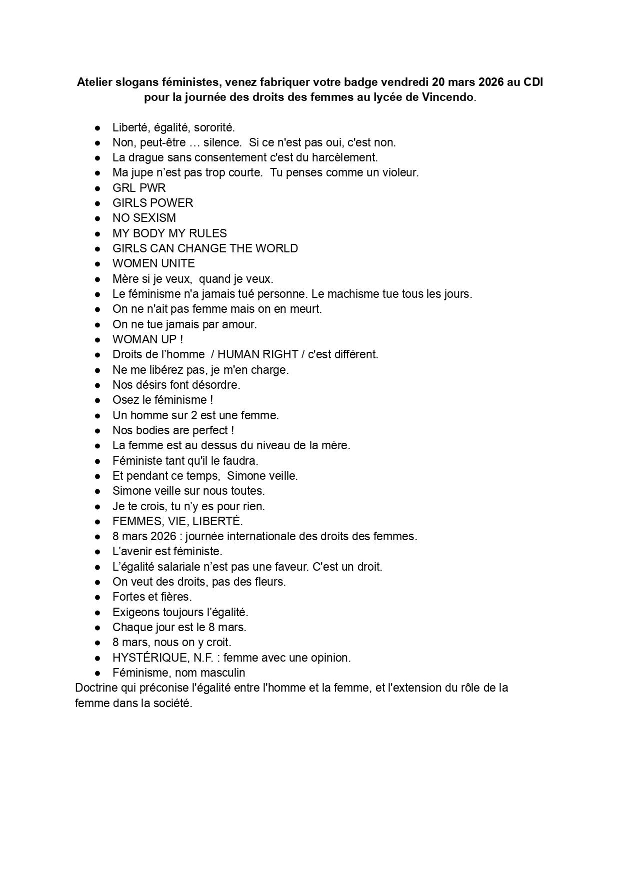• Une matinée engagée au CDI : art, échanges et mobilisation pour les droits des femmes.