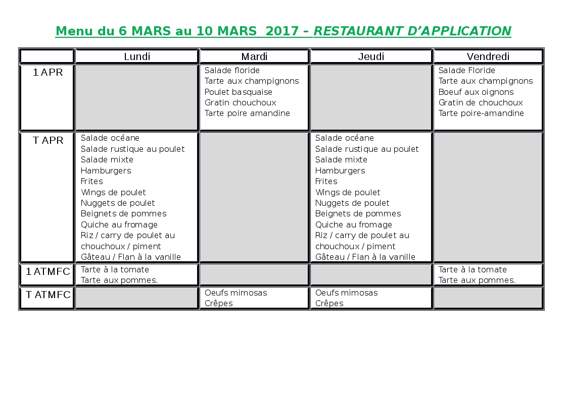 Menu S10 2017